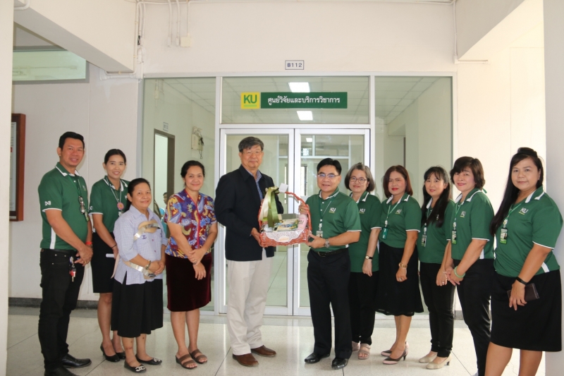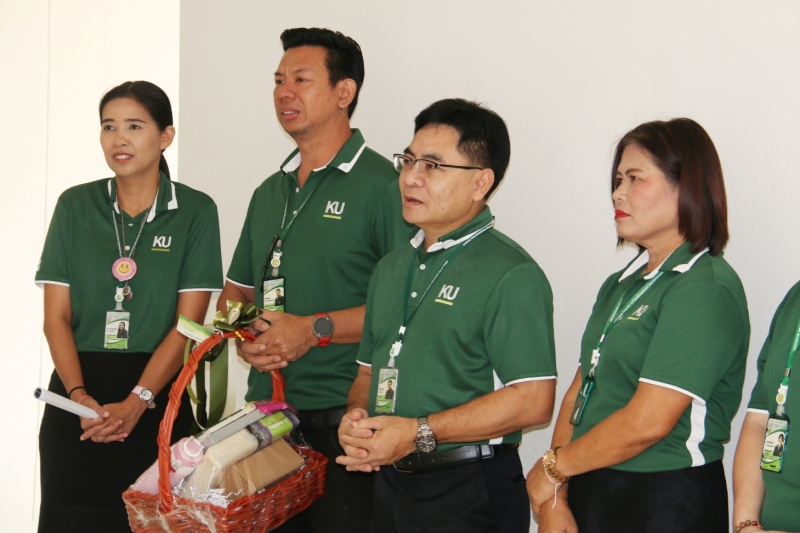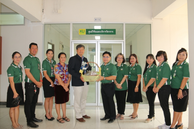 รศ.ดร.ปภพ สินชยกุล คณบดีคณะเกษตร กำแพงแสน พร้อมด้วยผู้บริหาร และบุคลากร คณะเกษตร กำแพงแสน รับมอบและมอบของขวัญให้แก่ นายเรวัติ อ่ำทอง ผู้อำนวยการสำนักหอสมุด กำแพงแสน และผู้ติดตาม เนื่องในเทศกาลปีใหม่ 2563 เมื่อวันพุธที่ 15 มกราคม 2563 ณ คณะเกษตร กำแพงแสน