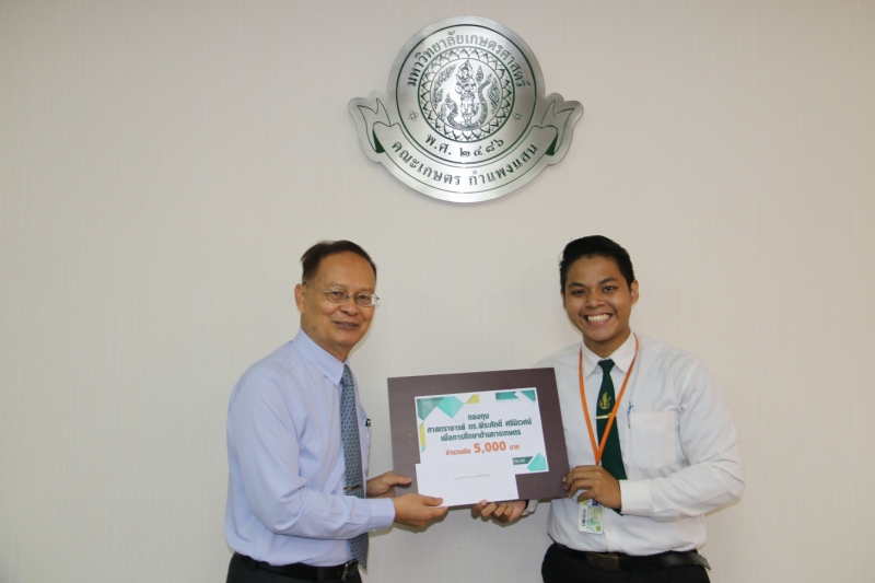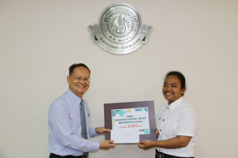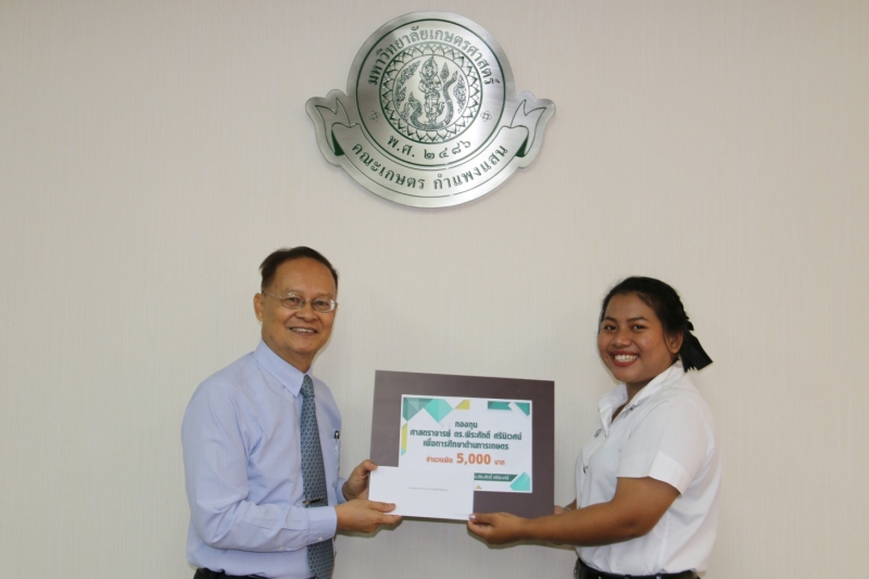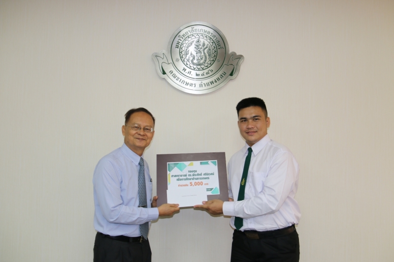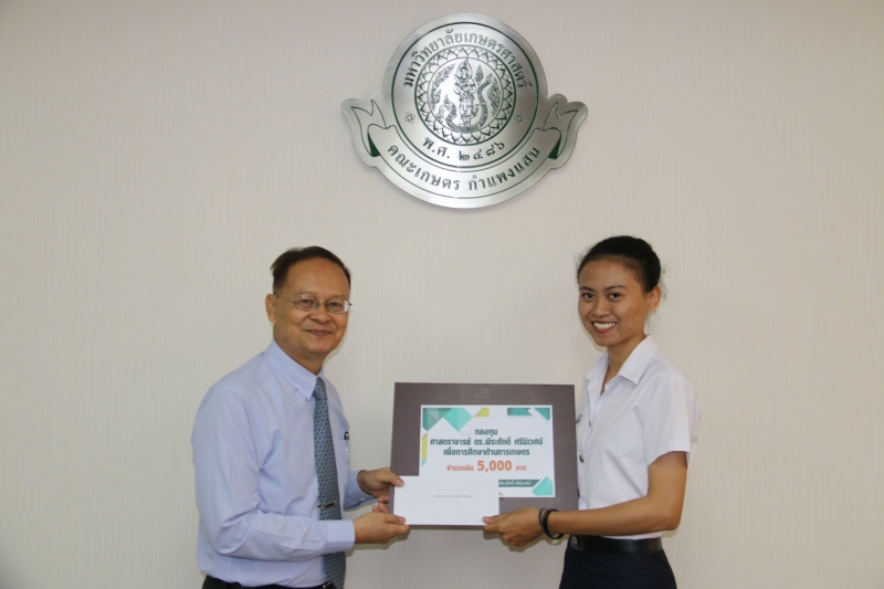 วันศุกร์ที่ 17 มกราคม 2563 เวลา 11.00 น. ศาสตราจารย์(เกียรติคุณ) ดร.พีระศักดิ์ ศรีนิเวศน์ ได้มอบทุนการศึกษา กองทุนศาสตราจารย์ ดร. พีระศักดิ์ ศรีนิเวศน์ เพื่อการศึกษาด้านการเกษตร ให้กับนิสิตคณะเกษตร กำแพงแสน จำนวน 5 ทุน ซึ่งเป็นนิสิตระดับปริญญาตรี ที่มีผลการเรียนดีและขาดแคลนทุนทรัพย์ โดยได้รับเกียรติจาก รศ.ดร.ปภพ สินชยกุล คณบดีคณเกษตร กำแพงแสน เป็นเกียรติกล่าวให้โอวาทแก่นิสิตที่เข้ารับทุน พร้อมด้วยผู้บริหารร่วมในพิธี และถ่ายรูปร่วมกัน ณ ห้องประชุมเสรี-สมพร ทรัพยสาร คณะเกษตร กำแพงแสน