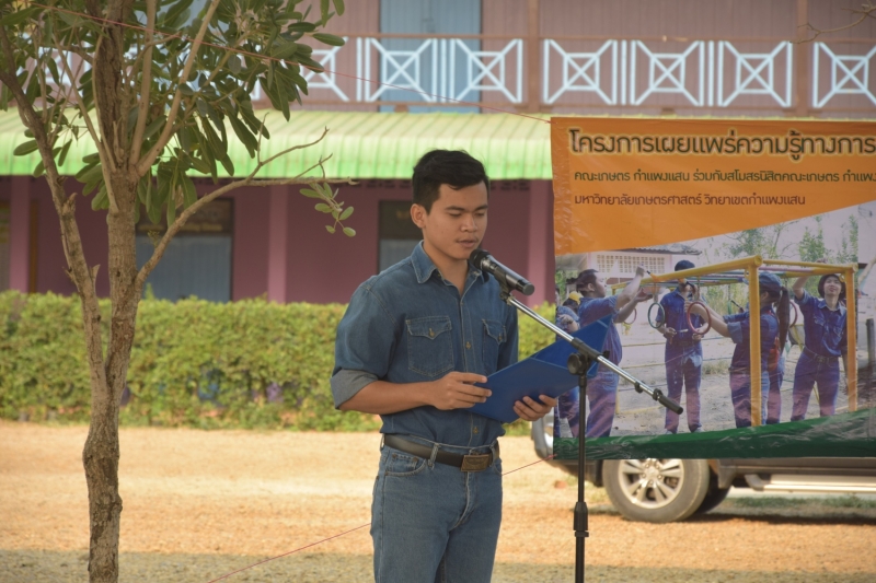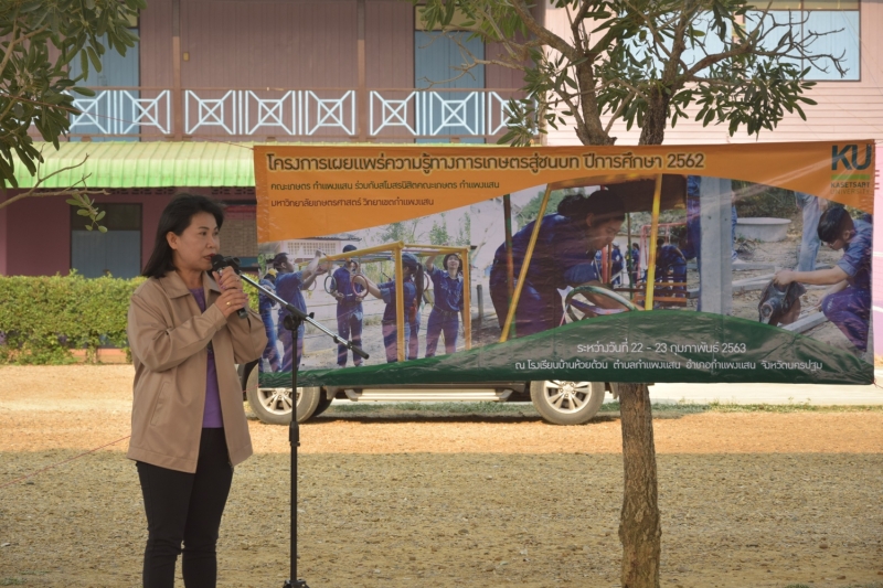 เมื่อวันที่ 22-23 กุมภาพันธ์ 2563 สโมสรนิสิตคณะเกษตร กำแพงแสน ดำเนินโครงการ เผยแพร่ความรู้ทางการเกษตรสู่ชนบท ประจำปีการศึกษา 2562 โดยการเข้าไปพัฒนาด้านการเกษตรให้แก่โรงเรียนบ้านห้วยด้วน เพื่อส่งเสริมความเป็นผู้นำ ก่อให้เกิดความสามัคคี ตระหนักถึงความสำคัญของชุมชนและสิ่งแวดล้อม อีกทั้งเป็นการเผยแพร่ชื่อเสียงของนิสิตทางด้านการเกษตรให้เป็นที่เป็นรู้จัก การแลกเปลี่ยนองค์ความรู้ ความคิดเห็น และการเรียนรู้ของนิสิตคณะเกษตร กำแพงแสน รวมไปถึงเป็นการให้นิสิตคณะเกษตร กำแพงแสน เรียนรู้การอยู่ร่วมกันกับผู้อื่นและมีส่วนร่วมในการรับผิดชอบกิจกรรมเพื่อตนเองและสังคม มีพิธีเปิดโครงการเมื่อวันที่ 22 กุมภาพันธ์ 2563 โดยนายทรงชัย ชมเหิม ประธานโครงการ กล่าวรายงาน และได้รับเกียรติจาก อาจารย์.ดร.ธวัชชัย อินทร์บุญช่วย รองคณบดีฝ่ายพัฒนานิสิต คณะเกษตร กำแพงแสน เป็นประธานกล่าวเปิดโครงการ ณ โรงเรียนบ้านห้วยด้วน อ.กำแพงแสน จ.นครปฐม