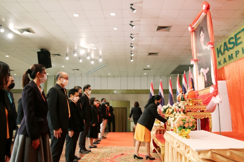 เมื่อศุกร์วันที่ 3 กรกฎาคม 2563 เวลา 09.00 น. ผศ.ดร.ศศิธร นาคทอง รองคณบดีฝ่ายวิจัยและบริการวิชาการ พร้อมด้วยคณะผู้บริหาร คณาจารย์ และบุคลากรคณะเกษตร กำแพงแสน ร่วมพิธีถวายพระพรเนื่องในโอกาสวันคล้ายวันประสูติศาสตราจารย์ ดร.สมเด็จพระเจ้าน้องนางเธอ เจ้าฟ้าจุฬาภรณวลัยลักษณ์ อัครราชกุมารี กรมพระศรีสวางควัฒน วรขัตติยราชนารี ทรงเจริญพระชนมายุ 63 พรรษา ในวันที่ 4 กรกฎาคม พุทธศักราช 2563 โดย ลงนามถวายพระพรชัยมงคล ถวายพานพุ่มดอกไม้ และถ่ายรูป ณ ห้องคอนเวนชั่น อาคารศูนย์มหาวิทยาลัย วิทยาเขตกำแพงแสน