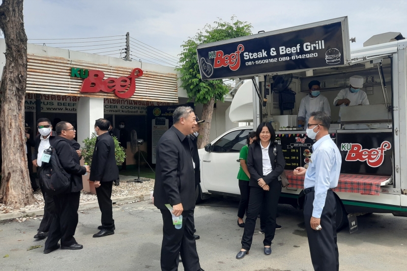 วันศุกร์ที่ 21 สิงหาคม 2563 ผู้บริหารคณะเกษตร กำแพงแสน นำโดย ผศ.ดร.เชิดพงษ์ ขีระจิตต์ รองคณบดีฝ่ายสารสนเทศ และ รศ.ดร.สุริยะ สะวานนท์ หัวหน้าภาควิชาสัตวบาล ให้การต้อนรับ คณาจารย์ เจ้าหน้าที่ และ นักศึกษาวิทยาลัยป้องกันราชอาณาจักร (วปอ.) รุ่นที่ 62 ในการเข้าศึกษาดูงานด้านการปรับปรุงพันธ์ุโคเนื้อพันธ์ุกำแพงแสน ณ ศูนย์สาธิตการผลิตโคเนื้อครบวงจร ภาควิชาสัตวบาล คณะเกษตร กำแพงแสน