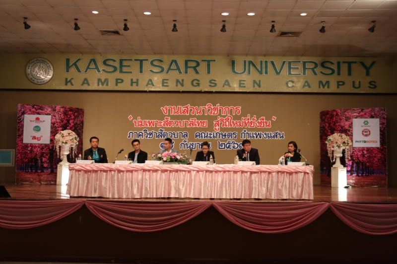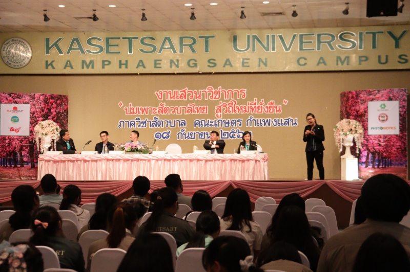 เมื่อวันที่ 18 กันยายน 2563 ภาควิชาสัตวบาล คณะเกษตร กำแพงแสน จัดการเสวนาวิชาการ เรื่อง บ่มเพาะสัตวบาลไทย สู่วิถีใหม่ที่ยั่งยืน ในโอกาสแสดงมุทิตาจิตแด่ รศ.ดร.นวลจันทร์ พารักษา และ ผศ.ดร.สิรินทร์พร สินธุวณิชย์ โดยได้รับเกียรติจาก รศ.ดร.สุริยะ สะวานนท์ หัวหน้าภาควิชาสัตวบาล กล่าวเปิดการเสวนา วิทยากรโดยผู้ทรงคุณวุฒิด้านต่างๆ ที่เกี่ยวข้องกับสัตบาล มีผู้ให้ความสนใจเข้าร่วมฟังเสวนาจำนวนมาก ณ ห้องคอนเวนชั่น อาคารศูนย์มหาวิทยาลัยเกษตรศาสตร์ วิทยาเขตกำแพงแสน