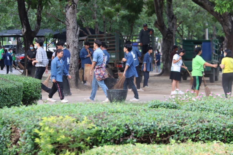 ร่วมทำความสะอาดลานจอดรถ และถนน บริเวณหน้าคณะเกษตร กำแพงแสน