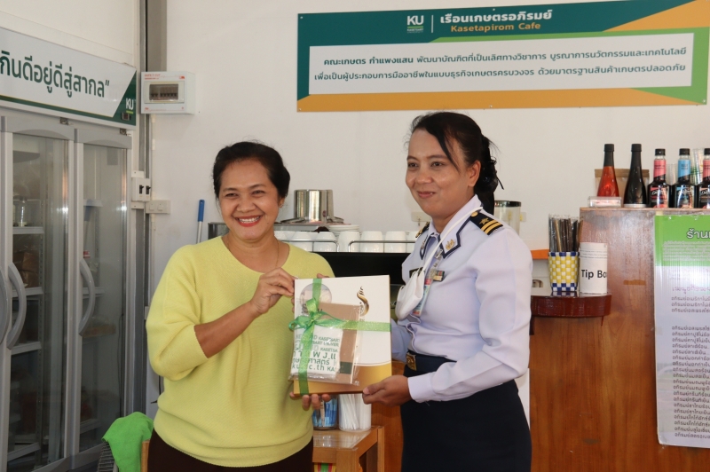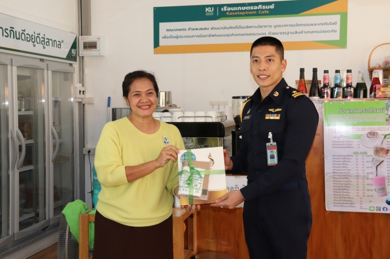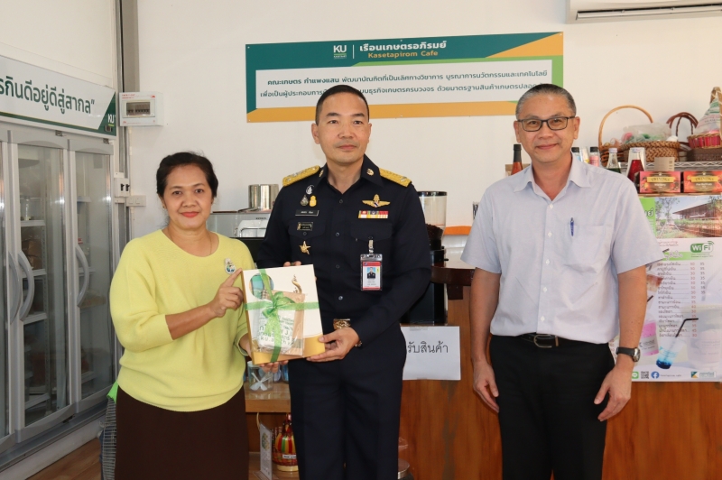 เมื่อวันศุกร์ที่ 6 พฤศจิกายน 2563 เวลา 10.00 น. รศ.น.สพ.ดร.อนุชัย ภิญโญภูมิมินทร์ รองอธิการบดีวิทยาเขตกำแพงแสน พร้อมด้วยคณะผู้บริหาร นำ พล.อ.ต. เสกสรร คันธา ผู้บัญชาการโรงเรียนการบิน พร้อมด้วยคณะผู้บริหาร เข้าเยี่ยมชมการดำเนินงานเรือนเกษตรอภิรมย์ แหล่งรวบรวมและจัดจำหน่ายผลิตภัณฑ์ สดใหม่จากฟาร์ม คณะเกษตร กำแพงแสน โดยมี ผศ.ดร.ศศิธร นาคทอง รองคณบดีฝ่ายวิจัยและบริการวิชาการ ผศ.ดร.ศุภชัย อำคา รองคณบดีฝ่ายพัฒนาทรัพยากรบุคคลและวิเทศสัมพันธ์ และนางสาวประนอม พลับจับโปะ หัวหน้าสำนักงานเลขานุการคณะเกษตร กำแพงแสน ให้การต้อนรับ ณ ร้านเรือนเกษตรอภิรมย์ คณะเกษตร กำแพงแสน