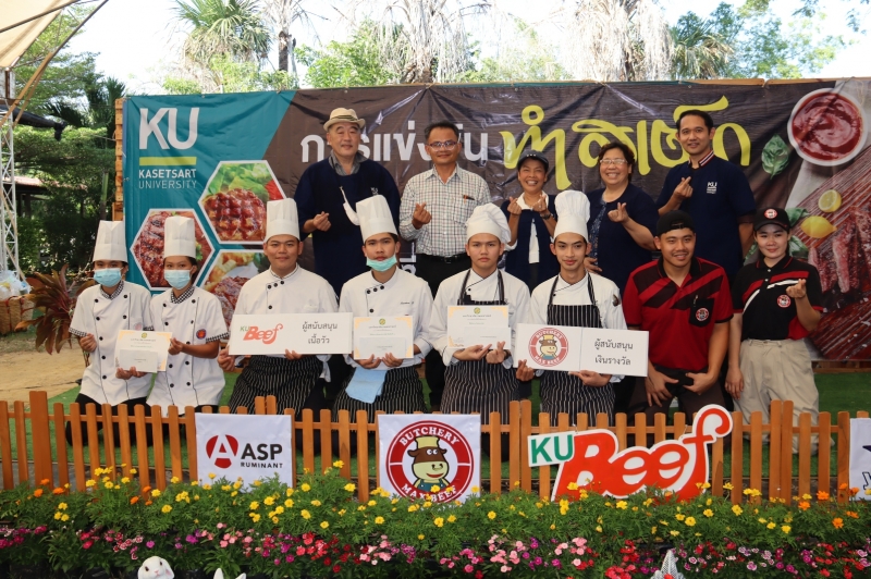 วันพุธที่ 3 ธันวาคม พ.ศ. 2563 13.00-16.00 น. ภาควิชาสัตวบาล คณะเกษตร กำแพงแสน จัดการแข่งขัน ทำสเต็กเนื้อโคกำแพงแสน ณ เวทีกลางงาน งานปศุสัตว์เกษตรกำแพงแสน โดยได้รับเกียรติจากผู้ทรงคุณวุฒิด้านอาหาร 4 ท่าน เป็นกรรมการตัดสิน ได้แก่ 1. เชฟศักดิ์ชัย ดิษฐกุล 2. อ.พงศ์อนันต์ ศิริแสงไพวัลย์ 3. อ.ศรีวรรณ อมรพูนชัย และ 4. อ.ขนิษฐา ชัยชาญกุล สุดพิเศษ ปีนี้ ในระหว่างการแข่งขัน มีการสาธิตการทำอาหารจากสเต็กเนื้อควาย โดยเชฟศักดิ์ชัย ดิษฐกุล และพล่าเนื้อควาย โดย อ.พงศ์อนันต์ ศิริแสงไพวัลย์ ให้ผู้เข้าชมการแข่งขันได้ชิมกันอีกด้วย ทีมที่ชนะ 3 อันดับ ได้รับมอบประกาศนียบัตรจาก รศ.ดร.สุริยะ สะวานนท์ หัวหน้าภาควิชาสัตวบาล คณะเกษตร กำแพงแสน และเงินรางวัลสนับสนุนโดย สหกรณ์เครือข่ายโคเนื้อ จำกัด (Max beef) สำหรับวัตถุดิบเนื้อโคที่ใช้ในการแข่งขันสนับสนุนโดย สหกรณ์โคเนื้อกำแพงแสน จำกัด