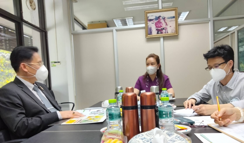 ผู้ช่วยศาสตราจารย์ ดร.รุ่งทิพย์ มาศเมธาทิพย์ ผู้อำนวยการศูนย์ความเป็นเลิศทางวิชาการด้านไหม และหัวหน้าภาควิชากีฏวิทยา คณะเกษตร กําแพงแสน มหาวิทยาลัยเกษตรศาสตร์ เข้าร่วมลงนามในบันทึกข้อตกลงความร่วมมือ เรื่อง การพัฒนาและส่งเสริมตลาดผลิตภัณฑ์สิ่งทอจากเส้นใยไหมอีรี่ ระหว่างมหาวิทยาลัยเกษตรศาสตร์และวิทยาเขตชุมชนสระแก้ว พร้อมด้วย นางสาวพิลาณี ไวถนอมสัตย์ ผู้อำนวยการสถาบันค้นคว้าและพัฒนาผลผลิตทางการเกษตรและอุตสาหกรรมเกษตร มหาวิทยาลัยเกษตรศาสตร์ และนายศิระพจต์ จริยาวุฒิกุล ผู้อำนวยการวิทยาลัยชุมชนสระแก้ว ในวันพฤหัสบดีที่ 24 กุมภาพันธ์ 2564 ณ สถาบันค้นคว้าและพัฒนาผลผลิตทางการเกษตรและอุตสาหกรรมเกษตร มหาวิทยาลัยเกษตรศาสตร์
