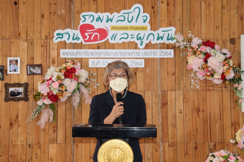 และเมื่อวันที่ 15 กันยายน 2564 เป็นพิธีการแสดงมุทิตาจิตจากบุคลากรคณะเกษตร กำแพงแสน ในรูปแบบออนไลน์ โดย รศ.ดร.ปภพ สินชยกุล คณบดีคณะเกษตร กำแพงแสน กล่าวเปิดงานและแสดงมุทิตาจิตแด่บุคลากรคณะเกษตร กำแพงแสน ที่ได้เกษียณอายุราชการในปีนี้ ทั้งยังได้กล่าวแสดงความในใจในฐานะผู้เกษียณอายุราชการในปีนี้เช่นกัน ได้รับเกียรติจาก ดร.รุ่งนภา ก่อประดิษฐ์สกุล ตัวแทนผู้อาวุโส, รศ.ดร.ธานี ศรีวงศ์ชัย คณบดีคณะเกษตร, หัวหน้าภาควิชา และผู้แทนหน่วยงาน กล่าวแสดงมุทิตาจิต โดยมี ผศ.ดร.ลพ ภวภูตานนท์ ในนามผู้เกษียณอายุราชการปีนี้ กล่าวขอบคุณ ในครั้งนี้มีบุคลากรลงทะเบียนเข้าร่วมงาน 173 คน