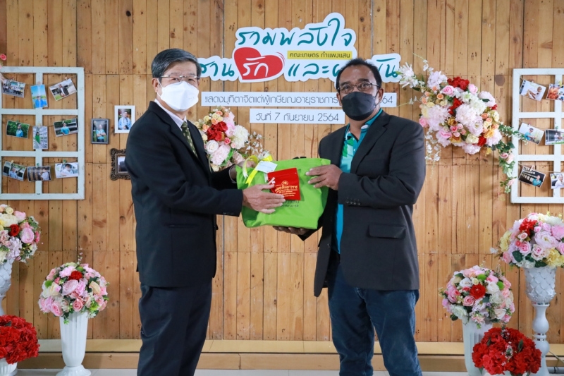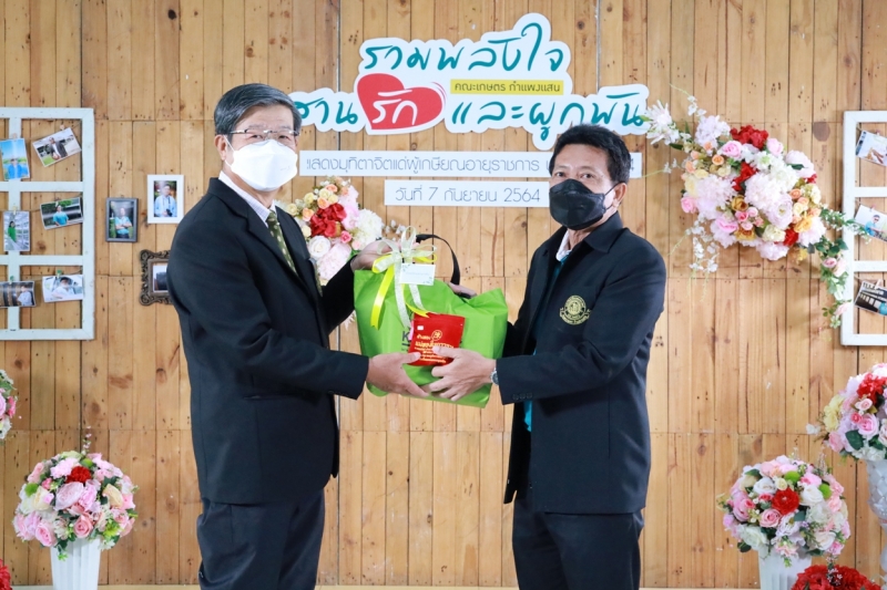 คณะเกษตร กำแพงแสน ได้จัดงาน รวมพลังใจ สานรัก และผูกพัน แสดงมิทิตาจิตแด่ผู้เกษียณอายุราชการ คณะเกษตร กำแพงแสน ประจำปี 2564 จำนวน 19 ท่าน โดย เมื่อวันที่ 7 กันยายน 2564 เป็นพิธีมอบของที่ระลึก โดย รศ.ดร.ปภพ สินชยกุล คณบดีคณะเกษตร กำแพงแสน เป็นประธาน กล่าวขอบคุณ แสดงมุทิตาจิต และมอบของที่ระลึก ทั้งนี้มีหัวหน้าหน่วยงานร่วมมอบของที่ระลึกด้วย