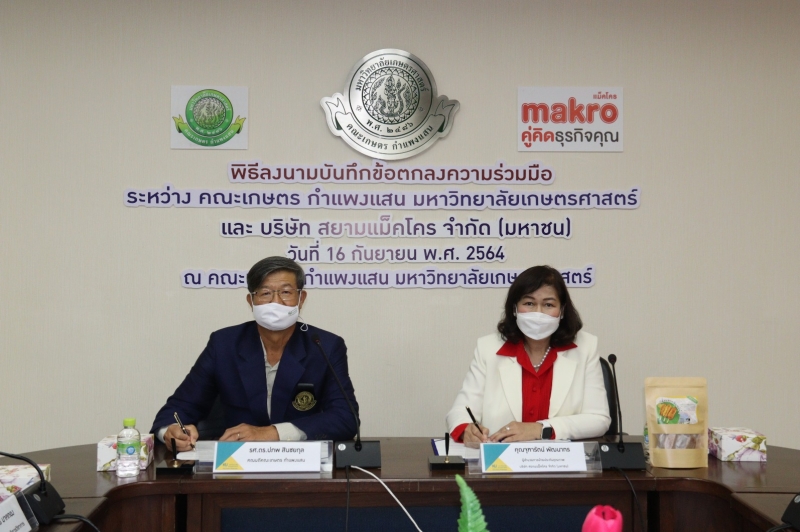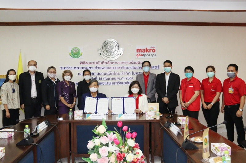 เมื่อวันที่ 16 กันยายน 2564 มีพิธีลงนามบันทึกข้อตกลงความร่วมมือทางวิชาการ ระหว่าง คณะเกษตร กำแพงแสน และ บริษัท สยามแม็คโคร จำกัด (มหาชน) ลงนามโดย รองศาสตราจารย์ ดร.ปภพ สินชยกุล คณบดีคณะเกษตร กำแพงแสน และ นางจุฑารัตน์ พัฒนาทร ตำแหน่ง ผู้อำนวยการฝ่ายประกันคุณภาพ ผู้รับมอบอำนาจจากบริษัท สยามแม็คโคร จำกัด (มหาชน) พยานโดย ผู้ช่วยศาสตราจารย์ ดร. ศศิธร นาคทอง รองคณบดีฝ่ายวิจัยและบริการวิชาการ และ นายปัญญวัฒน์ เอกอิษวัตวิกุล ผู้จัดการอาวุโสฝ่ายประกันคุณภาพ บริษัท สยามแม็คโคร จำกัด (มหาชน) ทั้งยังมีผู้บริหารของทั้ง 2 ฝ่าย ร่วมเป็นสักขีพยาน ณ ห้องประชุมเสรี-สมพร ทรัพยสาร คณะเกษตร กำแพงแสน