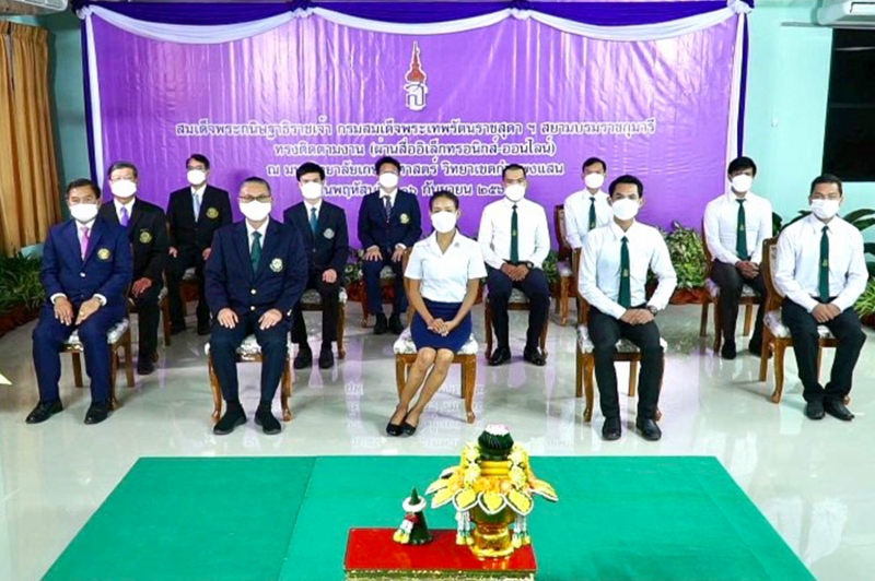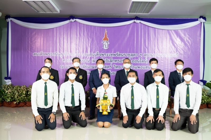 รองศาสตราจารย์ ดร.ปภพ สินชยกุล คณบดีคณะเกษตร กำแพงแสน พร้อมด้วยนิสิตทุนพระราชทานจากคณะเกษตร กำแพงแสน 2 คน ได้แก่ Mr. Pha Ratha หลักสูตร วท.ม. วิจัยและพัฒนาการเกษตร (นานาชาติ) และ Mr. Tong Piny หลักสูตร วท.ม. วิจัยและพัฒนาการเกษตร (นานาชาติ) ร่วมเข้าเฝ้าทูลละอองพระบาทสำนึกในพระมหากรุณาธิคุณผ่านสื่ออิเล็กทรอนิกส์ (ออนไลน์) ณ อาคารศูนย์เรียนรวม 3 มหาวิทยาลัยเกษตรศาสตร์ วิทยาเขตกำแพงแสน