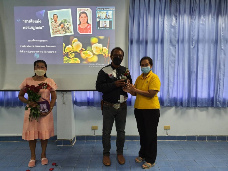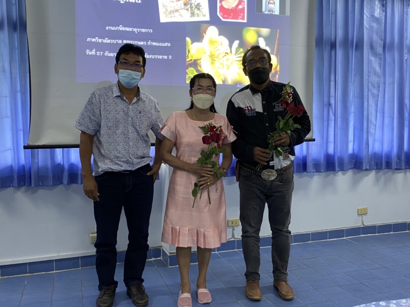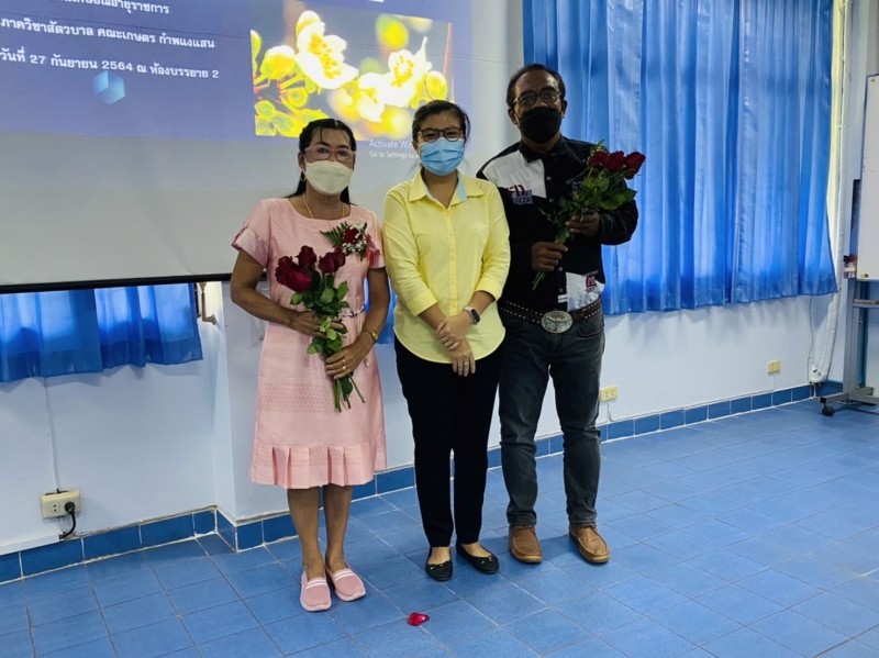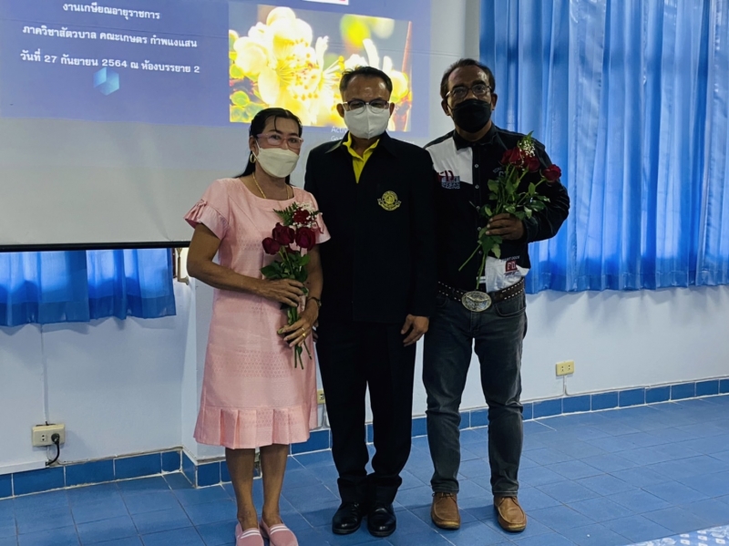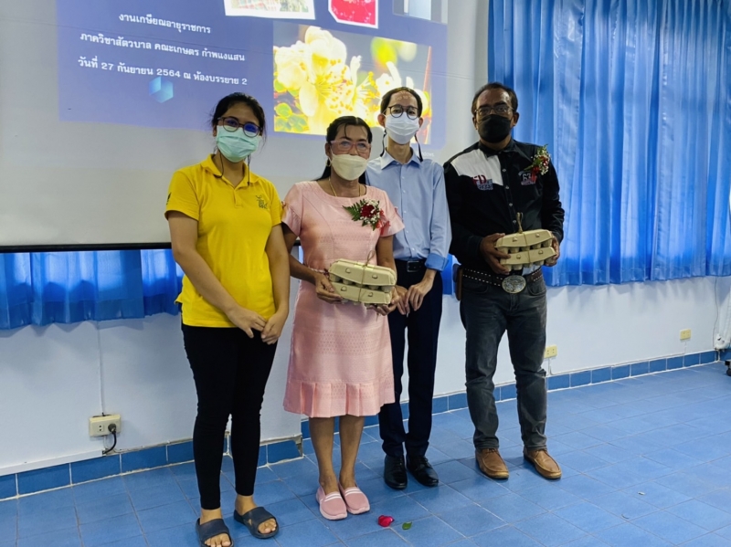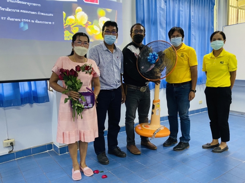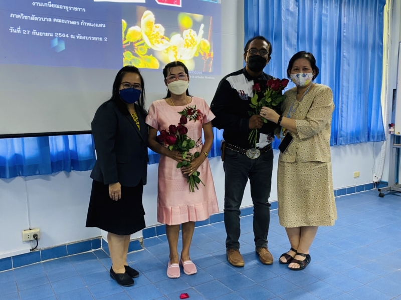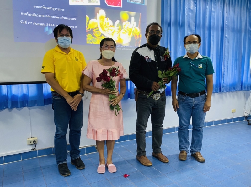 เมื่อวันที่ 27 กันยายน 2564 ภาควิชาสัตวบาล คณะเกษตร กำแพงแสน ได้จัดงาน สายใยความผูกพัน เพื่อแสดงมุทิตาจิตแด่ผู้เกษียณอายุราชการ/อายุงาน ของภาควิชาสัตวบาล ประจำปี 2564 จำนวน 2 ท่าน ได้แก่ คุณสิทธิชัย แก้วสุวรรณ์ และ คุณบุญรอด ศรีแสงฉาย โดย ศาสตราจารย์ ดร.สุริยะ สะวานนท์ หัวหน้าภาควิชาสัตวบาล เป็นประธาน กล่าวขอบคุณ แสดงมุทิตาจิต และมอบของที่ระลึก ทั้งนี้มีรองหัวหน้าภาควิชาฝ่ายบริหาร รองหัวหน้าภาคฝ่ายวิจัยและบริการวิชาการ อาจารย์อาวุโส และตัวแทนบุคลากร ร่วมกล่าวแสดงมุทิตาจิตและมอบของที่ระลึกด้วย