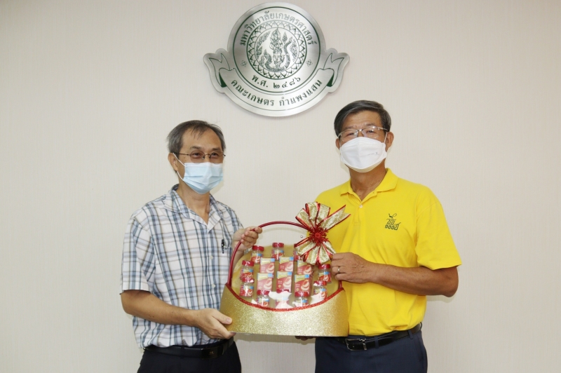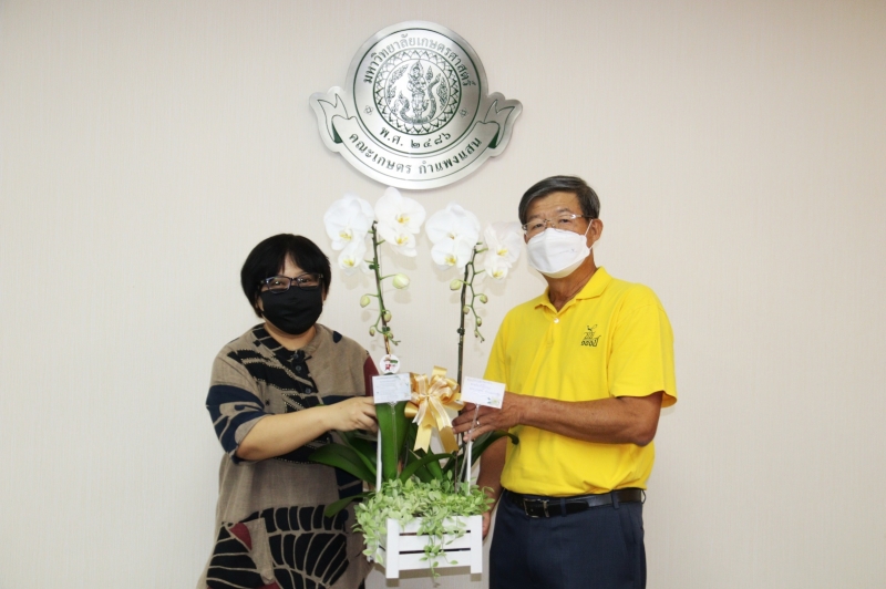 เมื่อวันที่ 27 ตุลาคม 2564 กรรมการประจำคณะเกษตร กำแพงแสน ร่วมแสดงความขอบคุณ รศ.ดร. ปภพ สินชยกุล เนื่องในโอกาสครบวาระ 4 ปี การดำรงตำแหน่งคณบดีคณะเกษตร กำแพงแสน มหาวิทยาลัยเกษตรศาสตร์ วิทยาเขตกำแพงแสน ทั้งนี้ รศ.ดร.ปภพ สินชยกุล ได้ส่งมอบเงินจำนวน 5,000 บาท ที่ ดร.รุ่งนภา ก่อประดิษฐ์สกุล ได้เคยมอบไว้ให้เพื่อใช้ประโยชน์กับคณะเกษตร กำแพงแสน โดย นางสาวประนอม พลับจะโปะ หัวหน้าสำนักงานเลขานุการคณะเกษตร กำแพงแสน เป็นผู้รับมอบ และได้ถ่ายรูปร่วมกันเป็นที่ระลึก ณ ห้องประชุม เสรี-สมพร ทรัพยสาร คณะเกษตร กำแพงแสน