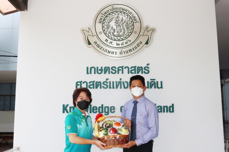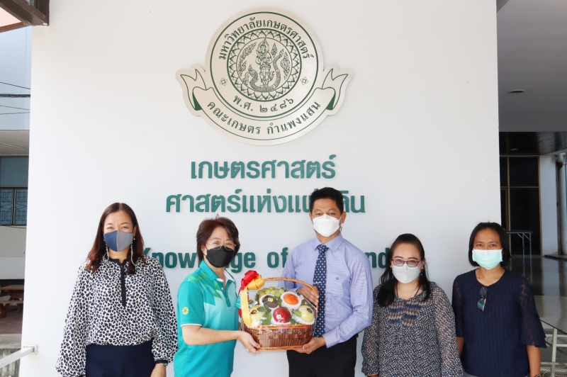ผู้ช่วยศาสตราจารย์ ดร.วราภา มหากาญจนกุล ผู้อำนวยการสถาบันวิจัยและพัฒนาแห่ง มก. เข้าแสดงความยินดีกับ ผู้ช่วยศาสตราจารย์ ดร. ชัยสิทธิ์ ทองจู เนื่องในโอกาสได้รับการแต่งตั้งให้ดำรงตำแหน่ง คณบดีคณะเกษตร กำแพงแสน ในโอกาสนี้ ผู้ช่วยศาสตราจารย์ ดร.ภัทรวดี สุ่มทอง นาคมี คณบดีคณะวิทยาศาสตร์ ศรีราชา ร่วมแสดงความยินดีและถ่ายรูปร่วมกัน เมื่อวันพุธที่ 11 พฤศจิกายน พ.ศ. 2564 ณ คณะเกษตร กำแพงแสน