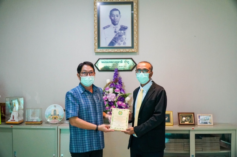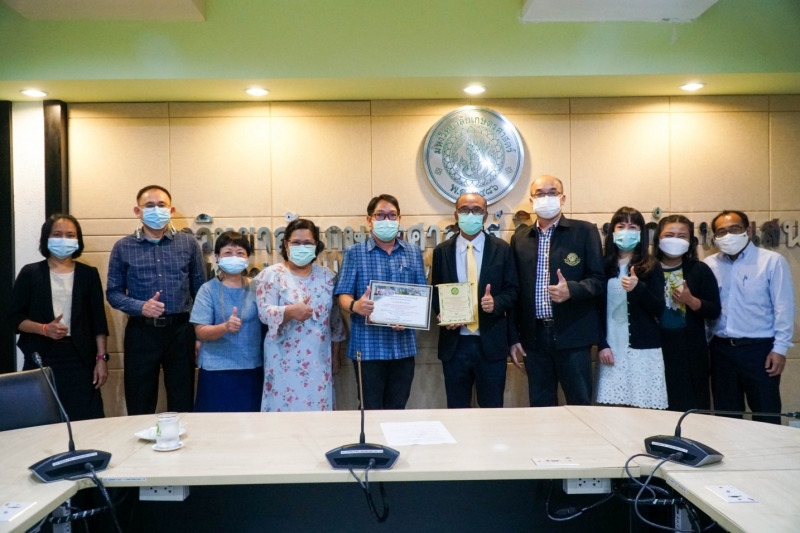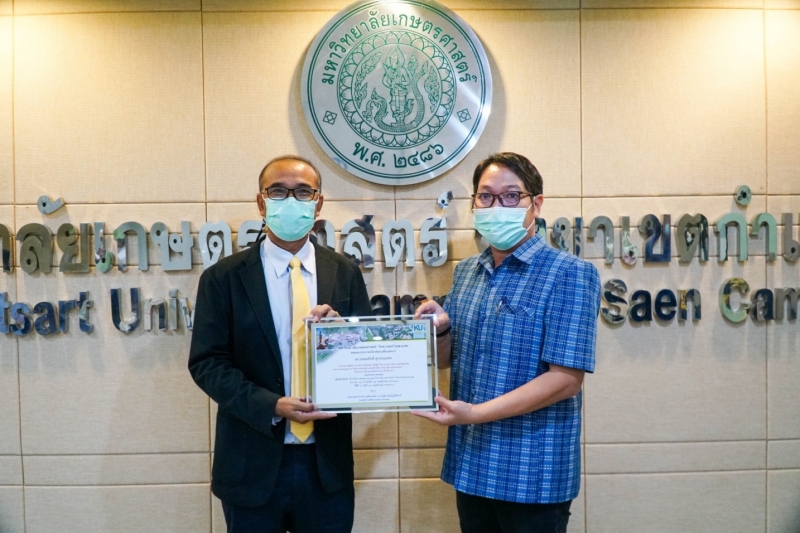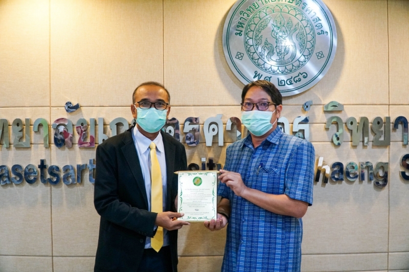 ผู้ช่วยศาสตราจารย์ ดร.ทิวา พาโคกทม หัวหน้าภาควิชาพืชไร่นา คณะเกษตร กำแพงแสน พร้อมด้วยผู้บริหารและคณาจารย์ นำ ดร.เทอดศักดิ์ สุวรรณเทพ รองกรรมการผู้จัดการอาวุโส งานวิจัยและพัฒนาพันธุ์ข้าวโพด บริษัท เครือเจริญโภคภัณฑ์โปรดิ๊วส์ จำกัด ศิษย์เก่าภาควิชาพืชไร่นา เข้ารับมอบโล่และใบประกาศเกียรติคุณ บุคลากรดีเด่น ด้านศิษย์เก่าดีเด่น ประเภทผู้บริหารภาคเอกชน เพื่อเป็นเกียรติในโอกาสวันคล้ายวันสถาปนาวิทยาเขตกำแพงแสน ครบรอบ 42 ปี ได้รับเกียรติจาก ดร.กิตติพจน์ เพิ่มพูล ผู้ช่วยอธิการบดีฝ่ายบริการวิชาการและกิจการพิเศษ วิทยาเขตกำแพงแสน มอบแทนรองอธิการบดีวิททยาเขตกำแพงแสน เมื่อวันศุกร์ที่ 19 พฤศจิกายน 2564 เวลา 09.00 น. ณ ห้องประชุมชั้น 3 อาคารชูชาติกำภู ในโอกาสนี้ ผู้ช่วยศาสตราจารย์ ดร.ชัยสิทธิ์ ทองจู คณบดีคณะเกษตร กำแพงแสน ได้ร่วมแสดงความยินดีด้วย