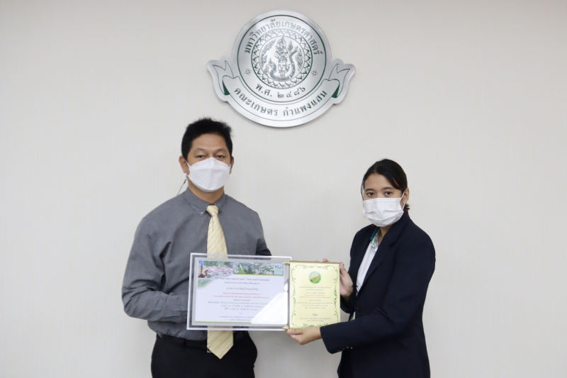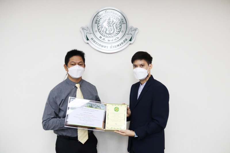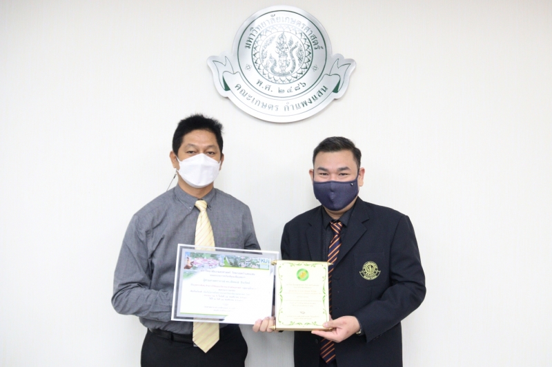 เมื่อวันที่ 1 ธันวาคม พ.ศ. 2564 ผู้ช่วยศาสตราจารย์ ดร.ชัยสิทธิ์ ทองจู คณบดีคณะเกษตร กำแพงแสน มอบโล่และประกาศเกียรติคุณให้แก่บุคลากรดีเด่น มหาวิทยาลัยเกษตรศาสตร์ วิทยาเขตกำแพงแสน ประจำปี 2564 จากวิทยาเขตกำแพงแสน เพื่อเป็นเกียรติในโอกาสวันคล้ายวันสถาปนาวิทยาเขตกำแพงแสน ครบรอบ 42 ปี ให้แก่ บุคลากรคณะเกษตร 4 ท่าน ได้แก่