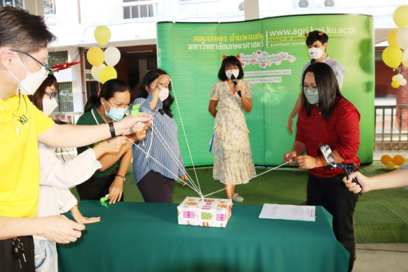 วันจันทร์ที่ 27 ธันวาคม พ.ศ. 2564 คณะเกษตร กำแพงแสน จัดกิจกรรม ร้อยดวงใจสู่ความสุขสดใส ประจำปี 2565 ภายใต้โครงการสร้างวัฒนธรรมและค่านิยมของบุคลากรคณะเกษตร กำแพงแสน โดย ได้รับเกียรติจาก ผู้ช่วยศาสตราจารย์ ดร.ชัยสิทธิ์ ทองจู คณบดีคณะเกษตร กำแพงแสน เป็นประธานกล่าวเปิดงาน มีกิจกรรมแนะนำบุคลากรใหม่ สันทนาการ และสุ่มมอบรางวัล มีผู้บริหาร คณาจารย์ และบุคลากร เข้าร่วมงาน ในรูปแบบ On-site ณ อาคารก่อประดิษฐ์สกุล คณะเกษตร กำแพงแสน และ รูปแบบ Online ผ่านระบบ WebEx กว่า 283 คน ทั้งยังมีผู้บริหารจากหน่วยงานต่างๆ ให้เกียรติร่วมในงาน