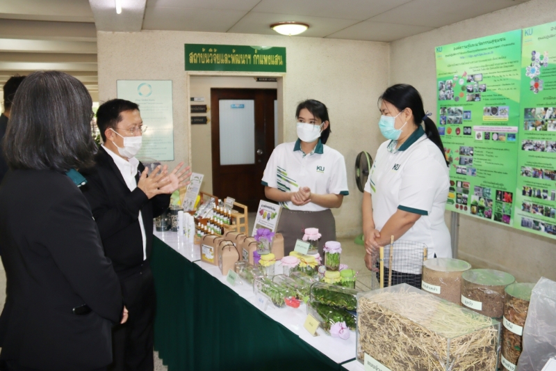 วันพฤหัสบดีที่ 6 มกราคม พ.ศ. 2565 ผู้ช่วยศาสตราจารย์ ดร.ชัยสิทธิ์ ทองจู คณบดีคณะเกษตร กำแพงแสน ดร.พีรพงษ์ แสงวนางค์กูล ผู้ช่วยคณบดีฝ่ายวิจัยและบริการวิชาการ พร้อมด้วยผู้บริหารและบุคลากร ร่วมต้อนรับ ดร.ดนุช ตันเทอดทิตย์ กรรมการผู้ช่วยรัฐมนตรีประจำกระทรวงการอุดมศึกษา วิทยาศาสตร์ วิจัย และนวัตกรรม และคณะ ในการเข้าเยี่ยมชมกิจกรรมมหาวิทยาลัยเกษตรศาสตร์ วิทยาเขตกำแพงแสน โดยเข้าเยี่ยมชมกิจกรรมในส่วนของคณะเกษตร กำแพงแสน ได้แก่ เรือนเกษตตรอภิรมย์, ศูนย์วิจัยและพัฒนาพืชผักเขตร้อน, ศูนย์ปฏิบัติการวิจัยและเรือนปลูกพืชทดลอง และ ศูนย์เทคโนโลยีหลังการเก็บเกี่ยว