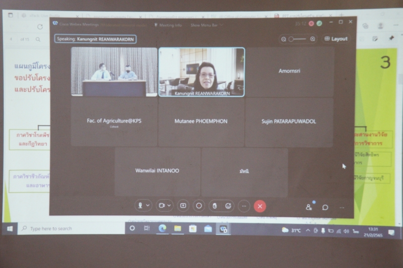 วันจันทร์ที่ 21 กุมภาพันธ์ พ.ศ. 2565 ผู้ช่วยศาสตราจารย์ ดร.ชัยสิทธิ์ ทองจู คณบดีคณะเกษตร กำแพงแสน พร้อมทั้งผู้เกี่ยวข้อง ได้พบกับผู้บริหาร คณาจารย์ และบุคลากรของภาควิชาโรคพืช คณะเกษตร กำแพงแสน เพื่อหารือแนวทางการปรับโครงสร้างหน่วยงานภายในคณะเกษตร กำแพงแสน ณ ห้องอเนกประสงค์ คณะเกษตร กำแพงแสน และในรูปแบบออนไลน์