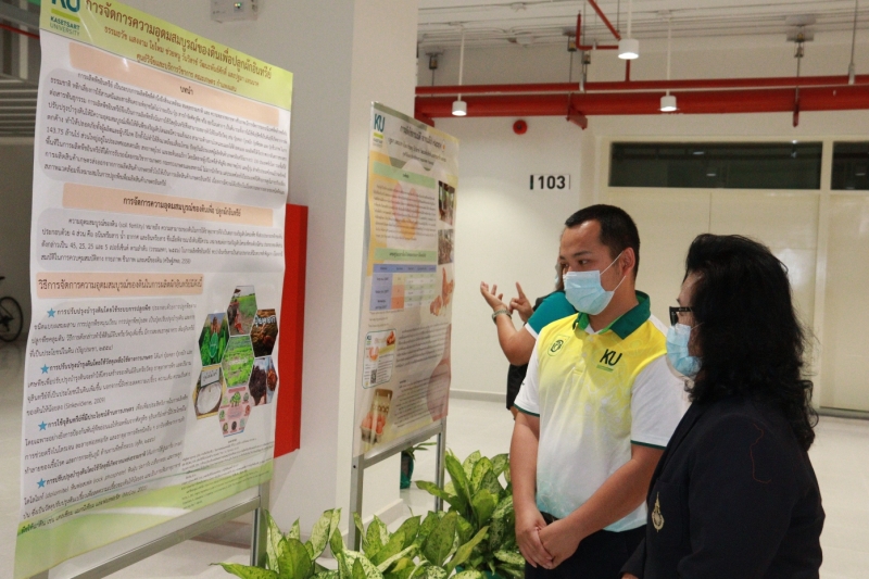 วันศุกร์ที่ 11 มีนาคม พ.ศ. 2565 ผศ.ดร.ชัยสิทธิ์ ทองจู คณบดีคณะเกษตร กำแพงแสน มอบหมายให้ รศ.ดร. ชัยณรงค์ รัตนกรีฑากุล รองคณบดีฝ่ายวิจัย บริการวิชาการ และวิเทศสัมพันธ์ คณะเกษตร กำแพงแสน ร่วมการสัมมนาทางวิชาการ เรื่อง การขับเคลื่อนเกษตรอินทรีย์ภายใต้บริบทเศรษฐกิจบีซีจี ณ ห้อง 4-101 อาคารศูนย์เรียนรวม 4 มก.กพส. และผ่านระบบอิเล็กทรอนิกส์ (ZOOM) meeting ทั้งยังมีผลิตผลและผลิตภัณฑ์ทางการเกษตร จากคณะเกษตร กำแพงแสน ร่วมจัดแสดงและจำหน่าย โดยมีนักวิจัยและนักวิชาการให้ข้อมูล ณ โถงอาคารศูนย์เรียนรวม 4 มก.กพส.