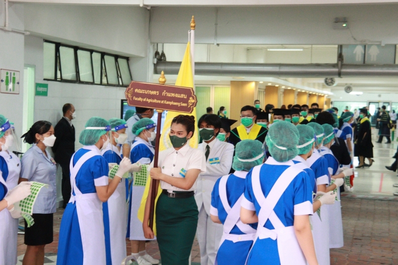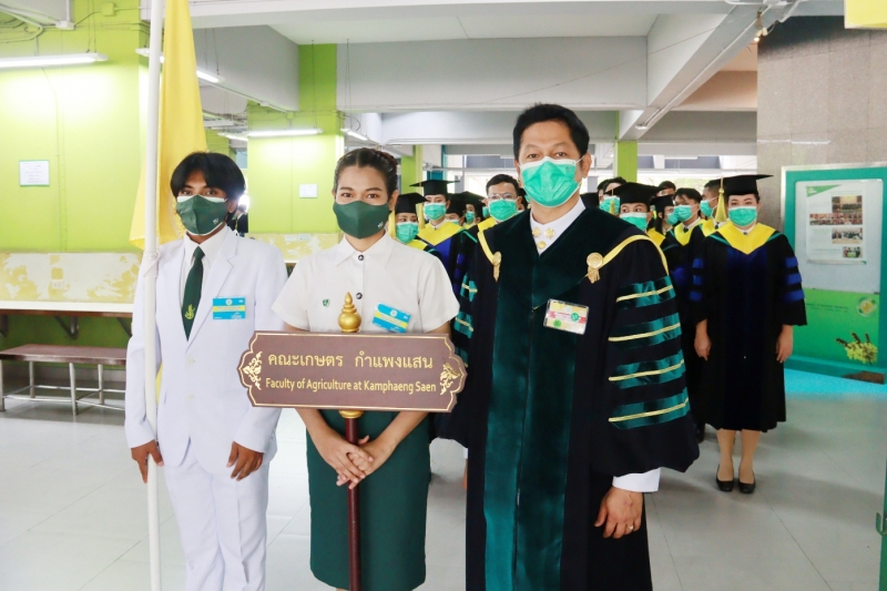 ผู้ช่วยศาสตราจารย์ ดร.ชัยสิทธิ์ ทองจู คณบดีคณะเกษตร กำแพงแสน พร้อมด้วยคณาจารย์ นำดุษฎีบัณฑิต มหาบัณฑิต และบัณฑิต ที่สำเร็จการศึกษาในปีการศึกษา 2563 เข้ารับพระราชทานปริญญาบัตร จาก ศาสตราจารย์ ดร. สมเด็จพระเจ้าน้องนางเธอ เจ้าฟ้าจุฬาภรณวลัยลักษณ์ อัครราชกุมารี กรมพระศรีสวางควัฒน วรขัตติยราชนารี เมื่อวันพุธที่ 23 มีนาคม พ.ศ. 2565 ณ อาคารจักรพันธ์เพ็ญศิริ มหาวิทยาลัยเกษตรศาสตร์ บางเขน