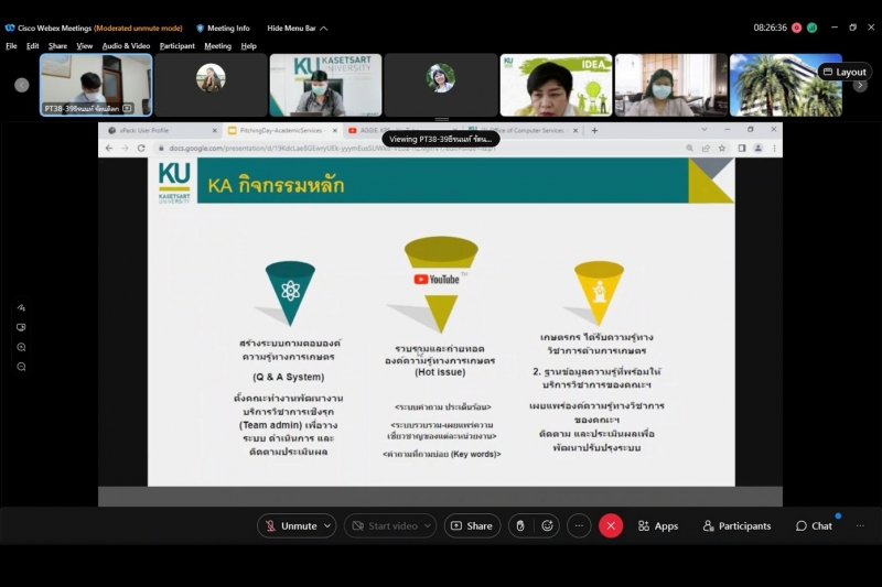 คณะกรรมการ KM คณะเกษตร กำแพงแสน ร่วมนำเสนอไอเดีย KM แนวคิดการจัดการความรู้ในโครงการสัมมนาแลกเปลี่ยนเรียนรู้ KM Pitching Day โดยมี นายธีรนนท์ รัตนดิลก บุคลากร ชำนาญการ คณะเกษตร กำแพงแสน เป็นตัวแทนในการนำเสนอ จำนวน 2 เรื่อง ได้แก่ PT38 โครงการแลกเปลี่ยนความรู้และประสบการณ์ระหว่างบุคลากรวิจัยและผู้มีส่วนได้เสียเพื่อจัดทำข้อเสนองานวิจัยตอบโจทย์ผู้ประกอบการ และ PT39 การพัฒนาบริการวิชาการเชิงรุก (การเกษตรประเด็นร้อนกับคณะเกษตร กำแพงแสน) ในรูปแบบออนไลน์ เมื่อวันพุธที่ 30 มีนาคม พ.ศ. 2565