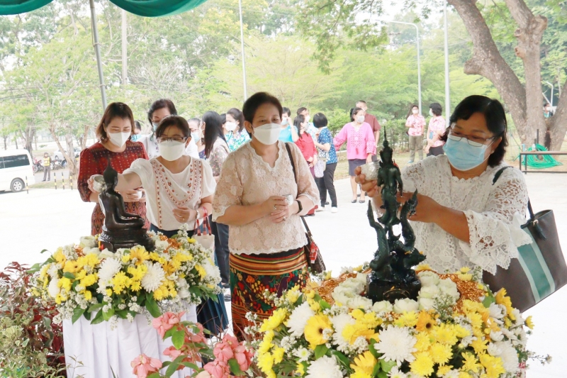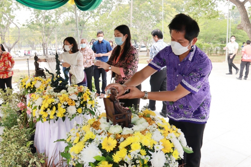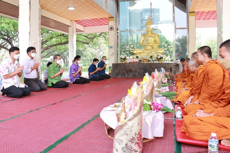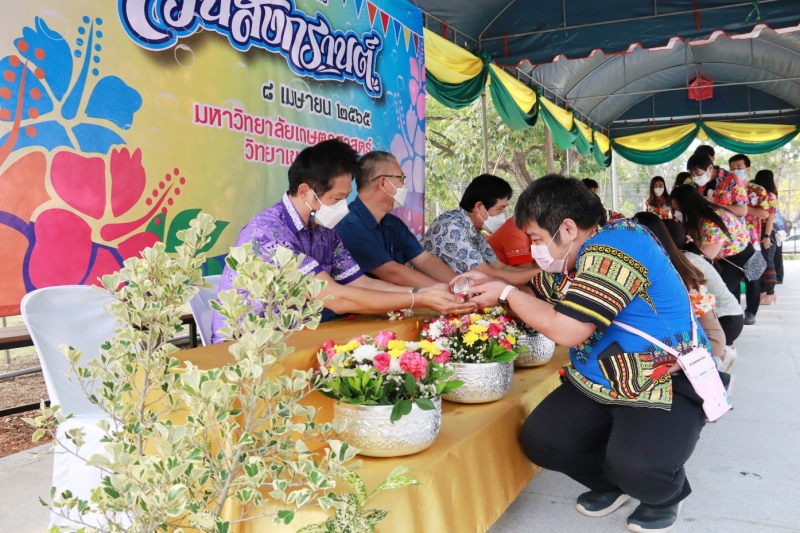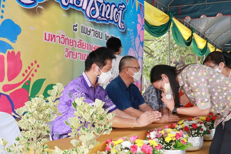 วันศุกร์ที่ 8 เมษายน พ.ศ. 2565 ผู้ช่วยศาสตราจารย์ ดร.ชัยสิทธิ์ ทองจู คณบดีคณะเกษตร กำแพงแสน พร้อมด้วยผู้บริหาร คณาจารย์ และบุคลากร ร่วมงานอนุรักษ์วัฒนธรรมไทยสืบสานประเพณีสงกรานต์ ประจำปี 2565 โดย รศ.น.สพ.ดร.อนุชัย ภิญโญภูมิมินทร์ รองอธิการบดีวิทยาเขตกำแพงแสน เป็นประธาน นำทุกท่านร่วมในพิธีสงฆ์ เพื่อรับพร และน้ำพระพุทธมนต์ จากนั้น ร่วมกันสรงน้ำพระพุทธรูป พระพิรุณ รูปปั้นหม่อมหลวงชูขาติ กำภู และรดน้ำดำหัวขอพรผู้อาวุโสและผู้บริหาร ณ พุทธอุทยานเกษตร กำแพงแสน มหาวิทยาลัยเกษตรศาสตร์ วิทยาเขตกำแพงแสน