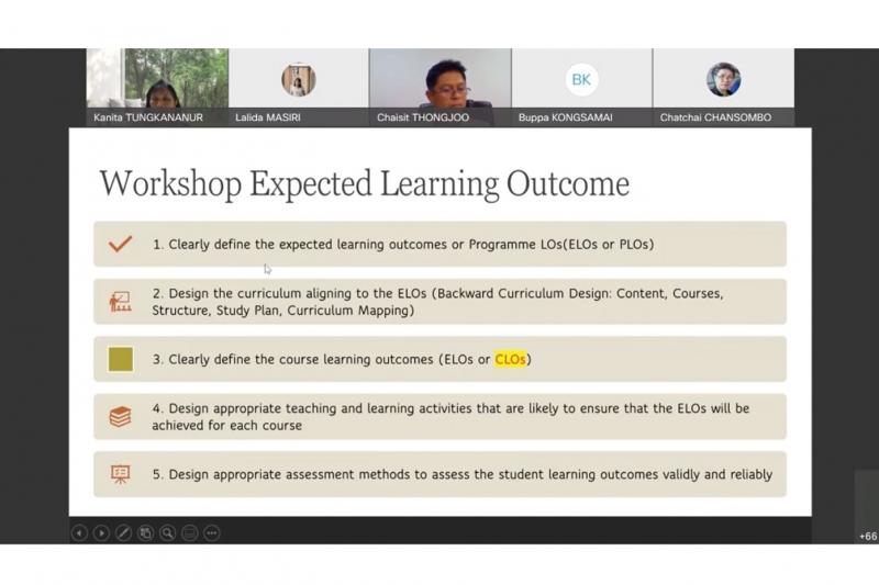 วันพุธที่ 20 เมษายน 2565 งานบริการการศึกษา คณะเกษตร กำแพงแสน จัดโครงการฝึกอบรม การบริหารหลักสูตรตามแนวทางการมุ่งเน้นผลลัพธ์การเรียนรู้ (Outcome based Education) ให้แก่คณาจารย์ คณะเกษตร กำแพงแสน โดย รศ.คณิตา ตังคณานุรักษ์ ผู้ช่วยอธิการบดีฝ่ายพัฒนาคุณภาพ มก. เป็นวิทยากร ในรูปแบบออนไลน์