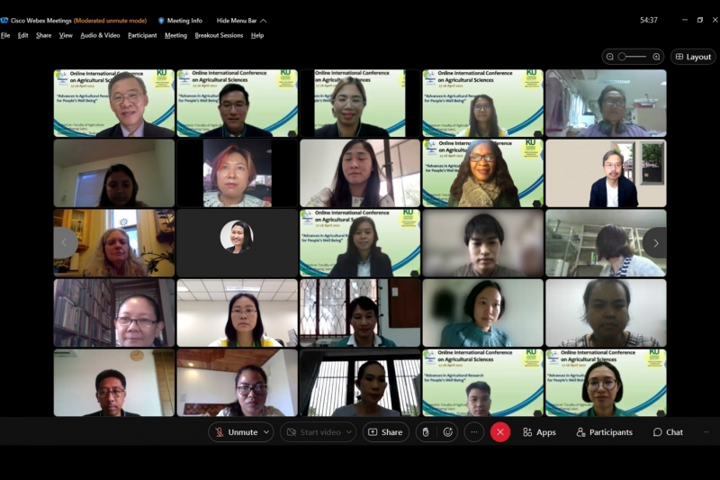 วันพุธที่ 27 เมษายน พ.ศ. 2565 รองศาสตราจารย์ ดร. ชัยณรงค์ รัตนกรีฑากุล รองคณบดีฝ่ายวิจัย บริการวิชาการและวิเทศสัมพันธ์ คณะเกษตร กำแพงแสน เป็นประธานกล่าวเปิดโครงการ International Webinar on Agricultural Sciences, Theme "Advances in Agricultural Research for People's Well Being" ผ่านระบบ WebEx Online Meeting โดยมีผู้สนใจลงทะเบียนเข้าร่วมโครงการฯ กว่า 200 คน จาก 18 ประเทศ