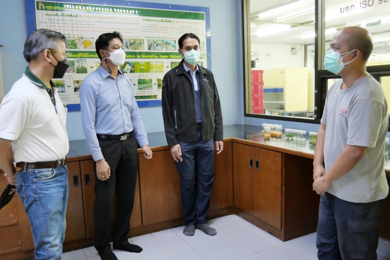ผู้ช่วยศาสตราจารย์ ดร.ชัยสิทธิ์ ทองจู คณบดีคณะเกษตร กำแพงแสน พร้อมรองศาสตราจารย์ ดร.ชัยณรงค์ รัตนกรีฑากุล รองคณบดีฝ่ายวิจัย บริการวิชาการและวิเทศสัมพันธ์ นายวงเดช กงศรี ผู้ช่วยคณบดีฝ่ายบริหารทรัพยากรและสื่อสารองค์กร และนายธรรมธวัช แสงงาม นักวิจัย ชำนาญการ ร่วมหารือความร่วมมือด้านการวิจัยในพื้นที่วิกฤต (สถานีวิจัยกาญจนบุรี) ร่วมกับผู้บริหาร บริษัท สยามฟอเรสทรี จำกัด นำโดย คุณอภิชาต ขาวสังข์ Manager-Smart Plantation Solutions เพื่อร่วมมือในด้านการวิจัย และสนับสนุนด้านการเรียนการสอนของคณะเกษตร กำแพงแสน ทั้งนี้ได้เข้าศึกษาดูงานห้องปฎิบัติการวิจัย แปลงปลูกพืชทดลองของบริษัท เมื่อวันพฤหัสบดีที่ 5 พฤษภาคม พ.ศ. 2565 ณ บริษัท สยามฟอเรสทรี จำกัด จังหวัดกาญจนบุรี