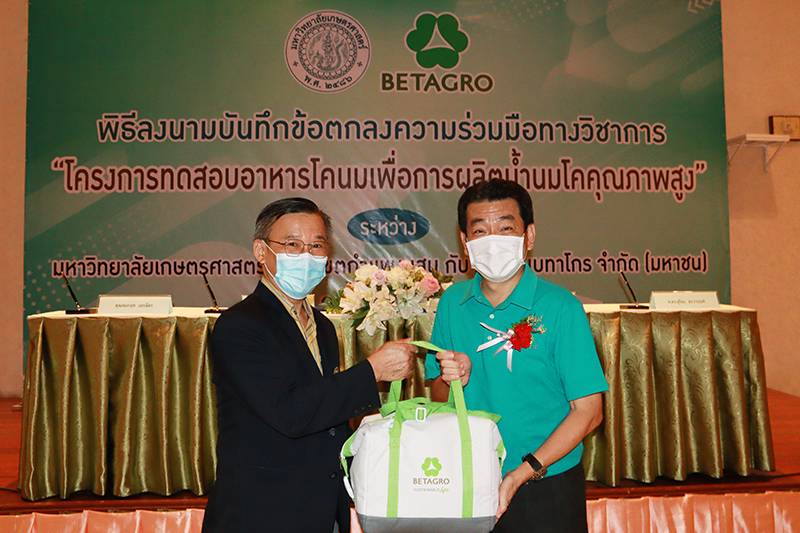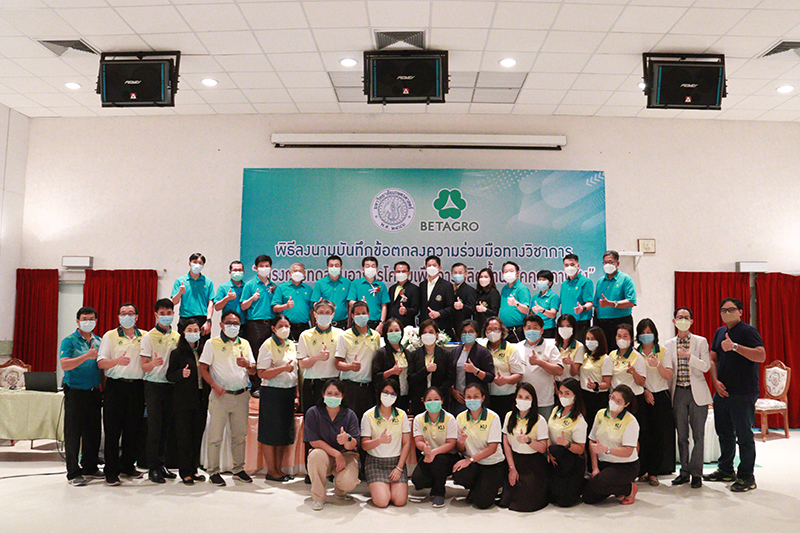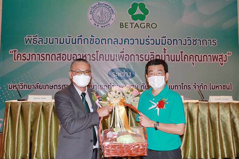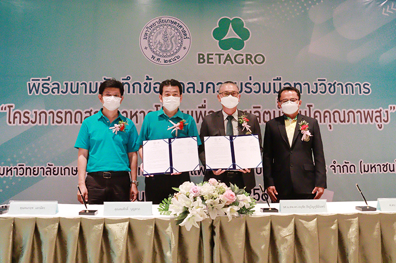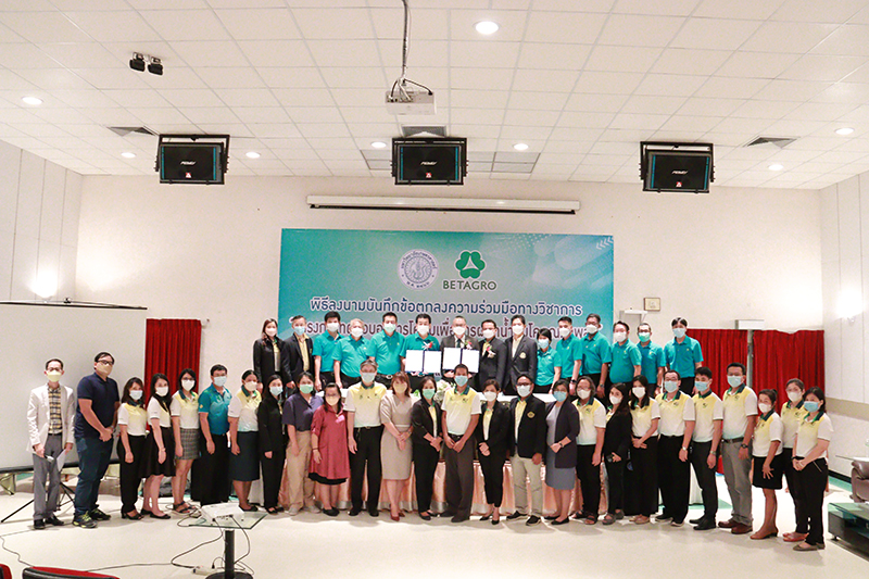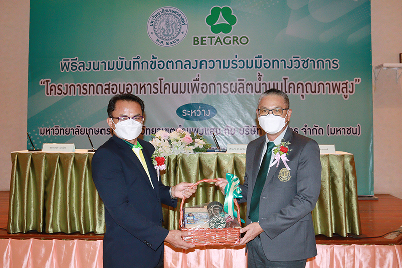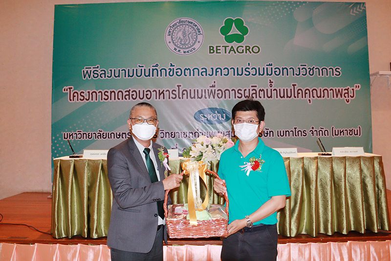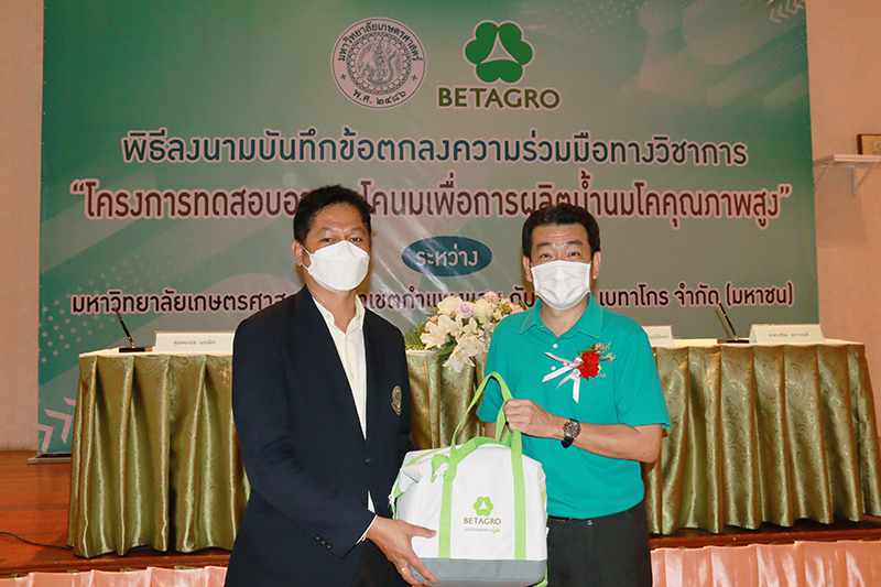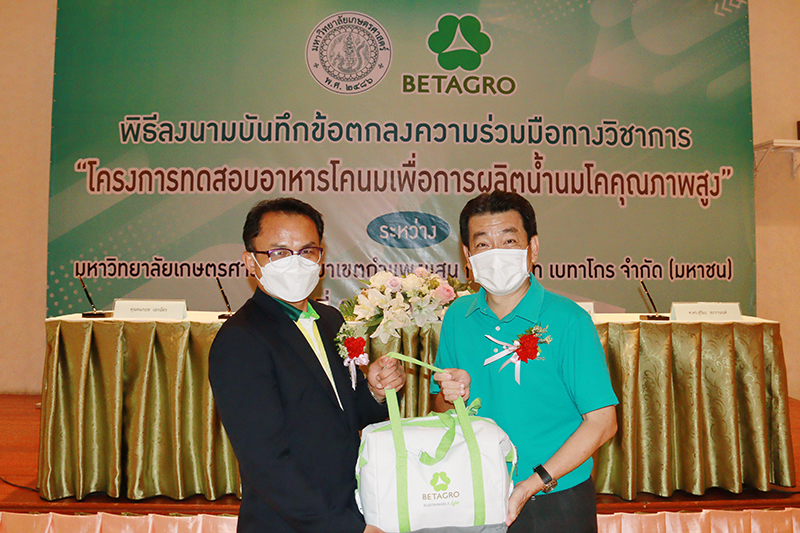 เมื่อวันพุธที่ 29 มิถุนายน 2565 เวลา 13.00-14.00 น. มหาวิทยาลัยเกษตรศาสตร์ วิทยาเขตกำแพงแสน ได้จัดให้มีพิธีลงนามบันทึกข้อตกลงความร่วมมือทางวิชาการ "โครงการทดสอบอาหารโคนมเพื่อการผลิตน้ำนมโคคุณภาพสูง" ระหว่าง มหาวิทยาลัยเกษตรศาสตร์ วิทยาเขตกำแพงแสน กับ บริษัท เบทาโกร จำกัด (มหาชน) โดยได้รับเกียรติจากคณะผู้บริหารบริษัท เบทาโกร จำกัด (มหาชน) คณะผู้บริหารมหาวิทยาลัยเกษตรศาสตร์ วิทยาเขตกำแพงแสน คณะผู้บริหารคณะเกษตร กำแพงแสน คณาจารย์ บุคลากร และนิสิตภาควิชาสัตวบาล คณะเกษตร กำแพงแสน เข้าร่วมพิธีลงนาม ณ ห้องเธียเตอร์ อาคารศูนย์ มหาวิทยาลัยเกษตรศาสตร์ วิทยาเขตกำแพงแสน