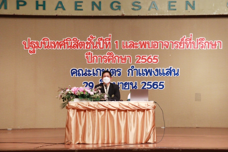 วันพุธที่ 29 มิถุนายน พ.ศ. 2565 คณะเกษตร กำแพงแสน จัดโครงการ ปฐมนิเทศนิสิตชั้นปีที่ 1 และพบอาจารย์ที่ปรึกษา ได้รับเกียรติจาก ผู้ช่วยศาสตราจารย์ ดร.ชัยสิทธิ์ ทองจู คณบดีคณะเกษตร กำแพงแสน กล่าวเปิดโครงการ วิทยากรแนะนำผู้บริหาร หัวหน้าภาควิชา ประธานอาจารย์ผู้รับผิดชอบหลักสูตร และคณาจารย์คณะเกษตร กำแพงแสน การแนะนำข้อมูลด้านการศึกษาในคณะเกษตร กำแพงแสน โดย ผู้ช่วยศาสตราจารย์ ดร.บุบผา คงสมัย รองคณบดีฝ่ายการศึกษาและประกันคุณภาพ การแนะนำข้อมูลด้านพัฒนานิสิตและทุนการศึกษา โดย ผู้ช่วยศาสตราจารย์ ดร.ธวัชชัย อินทร์บุญช่วย รองคณบดีฝ่ายพัฒนานิสิต กิจกรรม นิสิตชั้นปีที่ 1 พบอาจารย์ที่ปรึกษา และรับประทานอาหารร่วมกัน ณ ห้องคอนเวนชั่น อาคารศูนย์มหาวิทยาลัยเกษตรศาสตร์ วิทยาเขตกำแพงแสน
