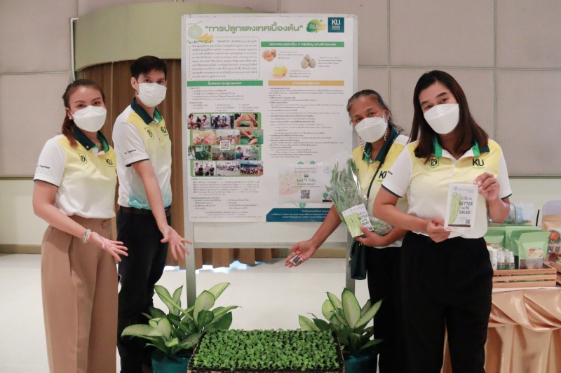 วันอังคารที่ 5 กรกฎาคม 2565 คณะเกษตร กำแพงแสน ร่วมจัดแสดงนิทรรศการนำเสนอผลการดำเนินงาน กิจกรรม โรงเรียนเกษตรอภิรมย์ รุ่นที่ 1" เรื่อง การปลูกเมล่อน ในกิจกรรม เวทีแลกเปลี่ยนเรียนรู้ 1 โครงการ 1 ส่วนงาน เพื่อพัฒนาคุณภาพชีวิตของมหาวิทยาลัยเกษตรศาสตร์ วิทยาเขตกำแพงแสน ครั้งที่ 1 (กิจกรรมที่ 7) ภายใต้โครงการสนับสนุนการพัฒนาต้นแบบเพื่อขยายผลการสร้างเสริมสุขภาพและคุณภาพชีวิต ทั้งยังเปิดรับสมัครผู้เข้าร่วมกิจกรรม โรงเรียนเกษตรอภิรมย์ รุ่นที่ 2 เรื่อง ผักสลัด-สลัดผัก อีกด้วย ณ ห้องคอนเวนชั่น อาคารศูนย์มหาวิทยาลัย วิทยาเขตกำแพงแสน