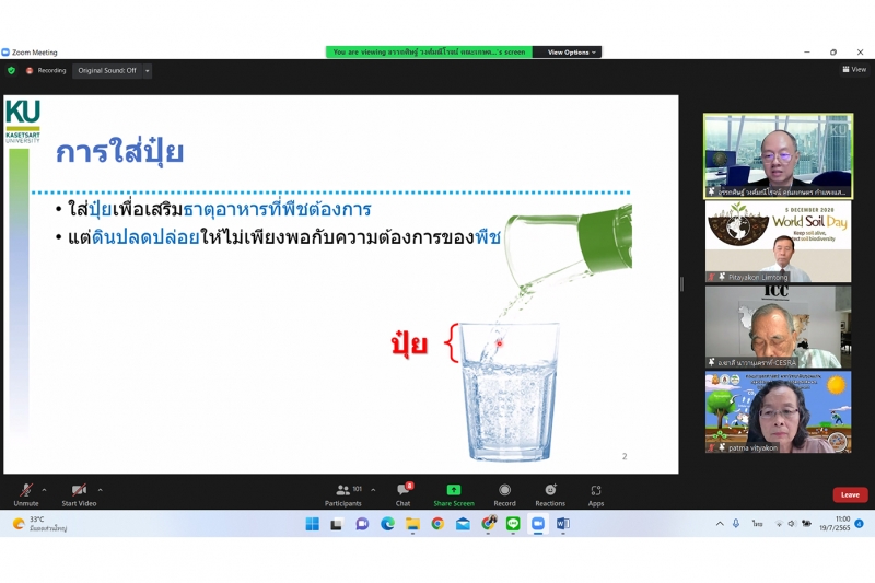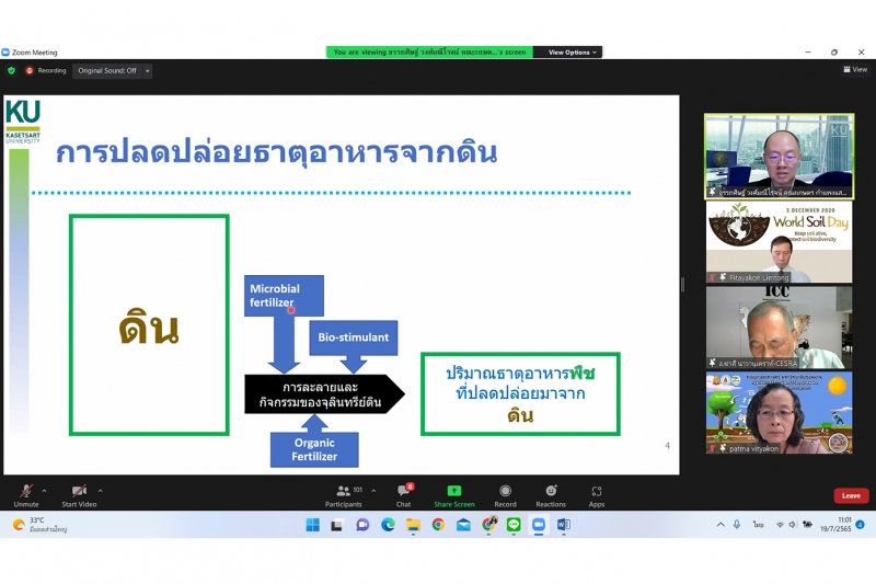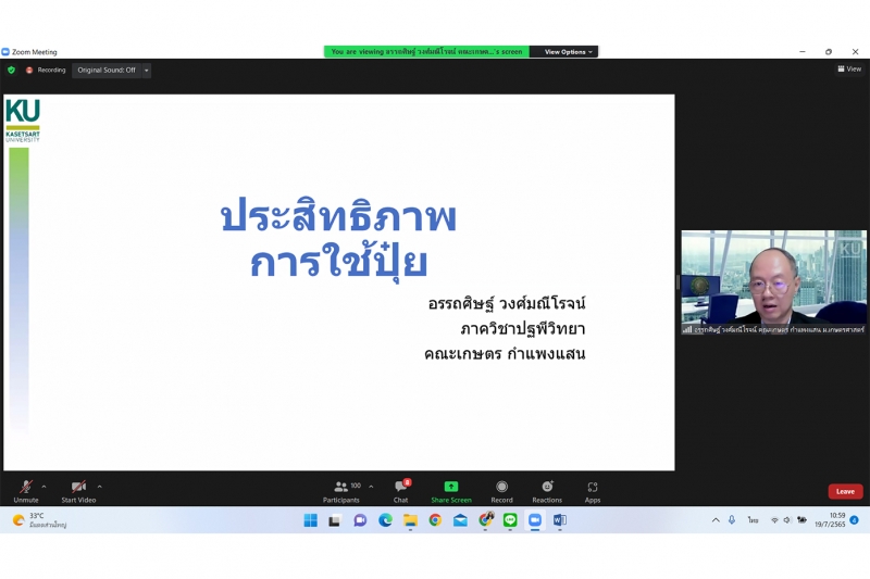 ผู้ช่วยศาสตราจารย์ อรรถศิษฐ์ วงศ์มณีโรจน์ ภาควิชาปฐพีวิทยา คณะเกษตร กำแพงแสน เป็นวิทยากรบรรยายในการประชุมระดมสมอง เรื่อง "ร่วมพลิกวิกฤตปุ๋ย ด้วยวิจัยและนวัตกรรม" เมื่อวันอังคารที่ 19 กรกฎาคม 2565 เวลา 09.30 12.30 น. ในรูปแบบออนไลน์ผ่านวีดีทัศน์ทางไกล (VDO Conference) ด้วยระบบ Zoom จัดโดยกระทรวงการอุดมศึกษา วิทยาศาสตร์ วิจัยและนวัตกรรม (อว.) และสำนักงานการวิจัยแห่งชาติ (วช.)