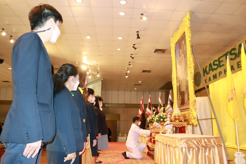 วันพุธที่ 27 กรกฎาคม 2565 ผู้ช่วยศาสตราจารย์ ดร. ชัยสิทธิ์ ทองจู คณบดีคณะเกษตร กำแพงแสน พร้อมด้วยผู้บริหาร และบุคลากร คณะเกษตร กำแพงแสน ร่วมพิธีลงนามถวายสัตย์ปฏิญาณ ถวายพระพรชัยมงคล และกล่าวถวายสัตย์ปฏิญาณเพื่อเป็นข้าราชการที่ดี และพลังของแผ่นดิน ประจำปี 2565 เนื่องในโอกาสวันเฉลิมพระชนมพรรษา พระบาทสมเด็จพระปรเมนทรรามาธิบดีศรีสินทรมหาวชิราลงกรณ พระวชิรเกล้าเจ้าอยู่หัว ในวันที่ 28 กรกฎาคม 2565 โดย รองศาสตราจารย์ น.สพ.ดร.อนุชัย ภิญโญภูมิมินทร์ รองอธิการบดีวิทยาเขตกำแพงแสน เป็นประธานในพิธี เพื่อเฉลิมพระเกียรติพระบาทสมเด็จพระเจ้าอยู่หัว แสดงความจงรักภักดี และน้อมสำนึกในพระมหากรุณาธิคุณ ณ ห้องคอนเวนชั่น อาคารศูนย์มหาวิทยาลัย วิทยาเขตกำแพงแสน