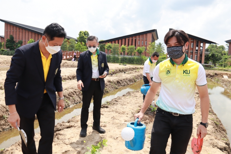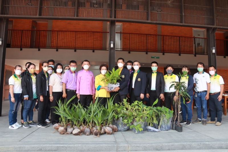 วันพุธที่ 27 กรกฎาคม พ.ศ. 2565 ผู้ช่วยศาสตราจารย์ ดร. ชัยสิทธิ์ ทองจู คณบดีคณะเกษตร กำแพงแสน รองศาสตราจารย์ ดร.ชัยณรงค์ รัตนกรีฑากุล รองคณบดีฝ่ายวิจัย บริการวิชาการและวิเทศสัมพันธ์ ผู้ช่วยศาสตราจารย์ ดร.วนิดา สืบสายพรหม ผู้ช่วยคณบดีฝ่ายกิจการพิเศษ พร้อมด้วยบุคลากร และนิสิต นำต้นไม้พันธุ์ต่างๆ ได้แก่ ฝรั่งหวานพิรุณ, เมล็ดมะละกอแขกดำเกษตร, มะพร้าวน้ำหอม มก.กพส., กล้วยพันธุ์ดี 4 สายพันธุ์ที่ได้จากการเพาะเลี้ยงเนื้อเยื่อ, น้อยหน่าเพชรปากช่อง/ฝ้ายเขียวเกษตร2, มะขามป้อมบางเบิด เป็นต้น พร้อมด้วยวัสดุปลูก มอบให้กับ หมู่บ้านเด็กเฉลิมพระเกียรติฯ จังหวัดนครปฐม โดย ม.ร.ว จิยากร เสสะเวช กรรมการอำนวยการและผู้บริหารหมู่บ้านเด็กมูลนิธิสงเคราะห์เด็กของสภากาชาดไทย และ นายมนตรี ปทัฏฐานมนตรี ผู้อำนวยการหมู่บ้านเด็กเฉลิมพระเกียรติฯ เป็นผู้รับมอบ และร่วมกันปลูกต้นไม้ โดยมี นายชยชัย แสงอินทร์ รองผู้ว่าราชการจังหวัดนครปฐม ร่วมด้วย ณ หมู่บ้านเด็กเฉลิมพระเกียรติ 60 พรรษา สมเด็จพระกนิษฐาธิราชเจ้า กรมสมเด็จพระเทพรัตนราชสุดาฯ มูลนิธิสงเคราะห์เด็กของสภากาชาดไทย