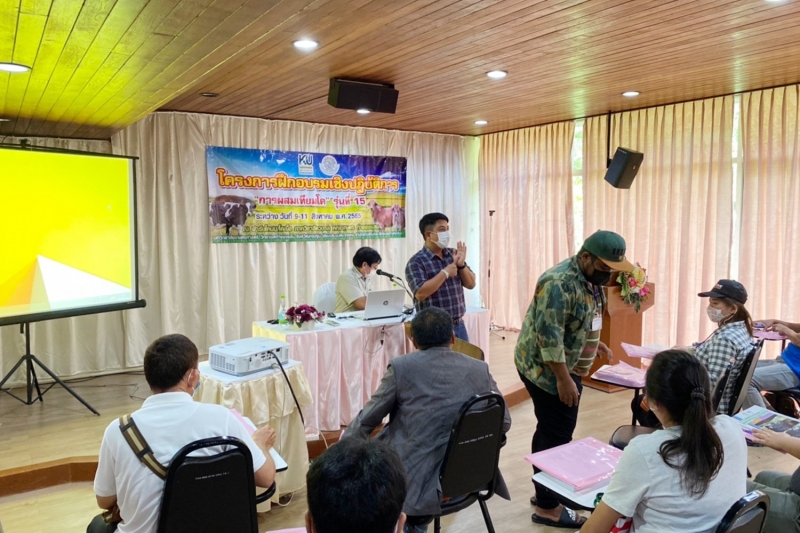 วันที่ 9 11 สิงหาคม พ.ศ. 2565 ฟาร์มโคนม/โคเนื้อ ภาควิชาสัตวบาล คณะเกษตร กำแพงแสน โดย อาจารย์นาม บัวทอง หัวหน้าโครงการ ได้จัดโครงการฝึกอบรมเชิงปฏิบัติการ การผสมเทียมโค รุ่นที่ 15 ให้กับกลุ่มเกษตรกรผู้เลี้ยงโคนม/โคเนื้อ ที่สนใจ และบุคคลทั่วไป เพื่อเป็นการเพิ่มพูนความรู้ ความเข้าใจ และสามารถนำทักษะเทคนิคการปฏิบัติการผสมเทียมโคไปใช้ประโยชน์ด้วยตนเองอย่างแท้จริง เป็นแนวทางในการประกอบอาชีพการเลี้ยงโคให้ดีขึ้นต่อไปได้ ซึ่งได้รับเกียรติจาก ศาสตราจารย์ ดร.สุริยะ สะวานนท์ หัวหน้าภาควิชาสัตวบาล เป็นประธานกล่าวให้โอวาทและมอบใบประกาศนียบัตร ณ ฟาร์มโคนม/โคเนื้อ ภาควิชาสัตวบาล คณะเกษตร กำแพงแสน