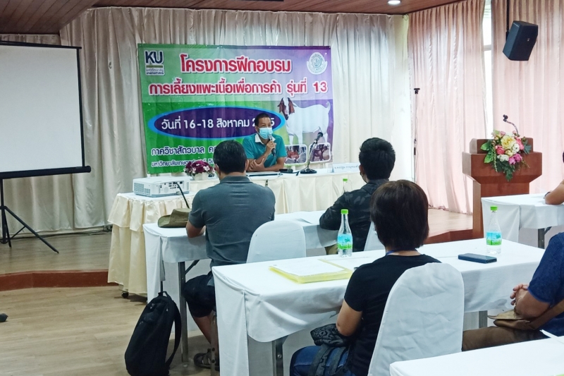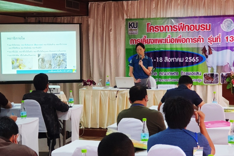 วันที่16-18 สิงหาคม 2565 ภาควิชาสัตวบาล คณะเกษตร กำแพงแสน จัดโครงการอบรมการเลี้ยงแพะเนื้อเพื่อการค้า รุ่นที่ 13 โดยอาจารย์คงปฐม กาญจนเสริม รองหัวหน้าภาควิชาสัตวบาล กล่าวเปิด-ปิดโครงการ และมอบใบประกาศนียบัตร แก่ผู้ร่วมอบรมจำนวน 17 คน ซึ่งการจัดอบรมมีการบรรยายหัวข้อต่างๆ ที่เกี่ยวข้องกับการเลี้ยงแพะเนื้อ ณ แสนปาล์มเทรนนิ่งโฮม มีการฝึกปฏิบัติเกี่ยวกับการจัดการฟาร์มแพะ ณ ฟาร์มแพะแกะ ภาควิชาสัตวบาล และเยี่ยมชมฟาร์มแพะพ่อแม่พันธุ์ ณ ศิริขวัญฟาร์ม จ.กาญจนบุรี