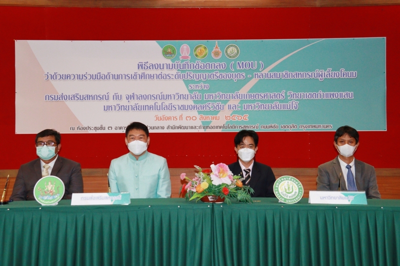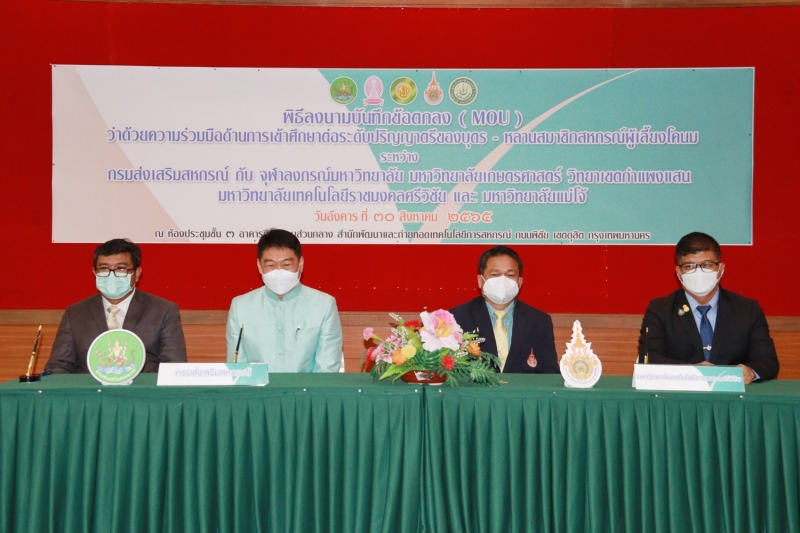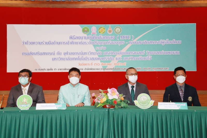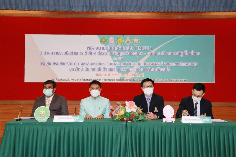 วันอังคารที่ 30 สิงหาคม 2565 ได้มีพิธีลงนามบันทึกข้อตกลง (MOU) ว่าด้วยความร่วมมือด้านการศึกษาต่อระดับปริญญาตีของบุตร-หลานสมาชิกสหกรณ์ผู้เลี้ยงโคนม ระหว่าง กรมส่งเสริมสหกรณ์ โดย นายวิศิษฐ์ ศรีสุวรรณ์ อธิบดีกรมส่งเสริมสหกรณ์ กับ 4 สถาบันอุดมศึกษา ได้แก่