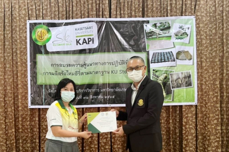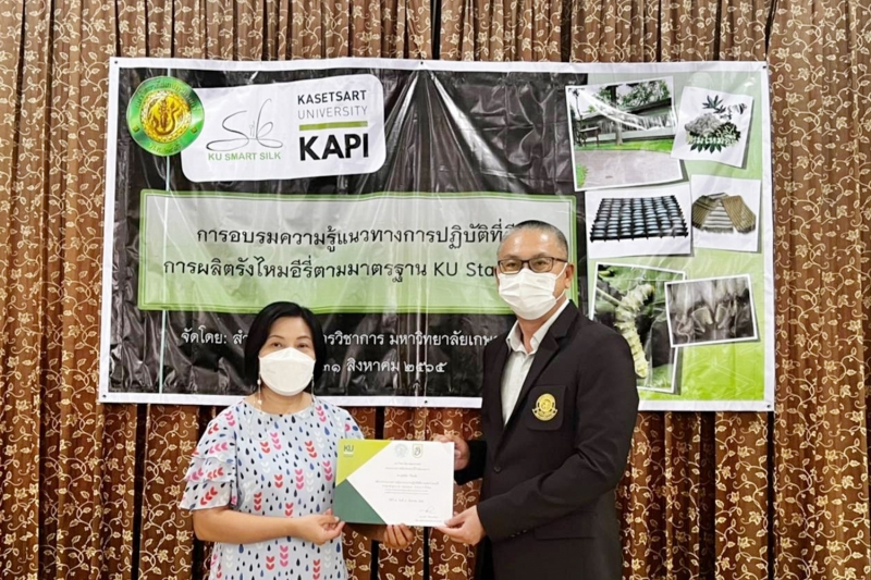อบรม ความรู้แนวทางการปฏิบัติที่ดี การผลิตรังไหมอีรี่ ตามมาตรฐาน KU Standard"