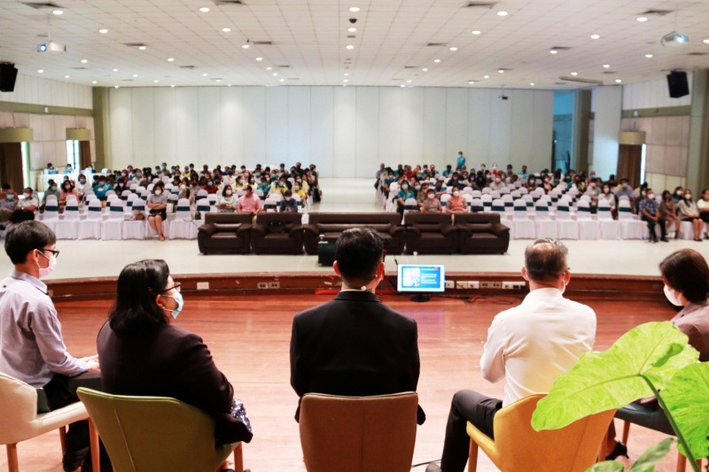 วันพฤหัสบดีที่ 1 กันยายน พ.ศ. 2565 คณะเกษตร กำแพงแสน จัดโครงการ ผู้บริหารพบบุคลากรคณะเกษตร กำแพงแสน ประจำปี 2565 มีการรายงานผลการบริหารงานคณะเกษตร กำแพงแสน และยุทธศาสตร์การบริหารงานคณะฯ โดย ผู้ช่วยศาสตราจารย์ชัยสิทธิ์ ทองจู คณบดีคณะเกษตร กำแพงแสน มีการ เสวนา แนวทางพัฒนาคณะเกษตร กำแพงแสน ตามภารกิจด้านการผลิตบัณฑิต การวิจัย และบริการวิชาการ โดยทีมผู้บริหาร 1) ผู้ช่วยศาสตราจารย์ชัยสิทธิ์ ทองจู คณบดีคณะเกษตร กำแพงแสน 2) รองศาสตราจารย์ชัยณรงค์ รัตนกรีฑากุล รองคณบดีฝ่ายวิจัย บริการวิชาการและวิเทศสัมพันธ์ 3) ผู้ช่วยศาสตราจารย์บุบผา คงสมัย รองคณบดีฝ่ายการศึกษาและประกันคุณภาพ 4) ผู้ช่วยศาสตราจารย์ธวัชชัย อินทร์บุญช่วย รองคณบดีฝ่ายพัฒนานิสิต 5) มีรองศาสตราจารย์ยุวเรศ เรืองพานิช เป็นผู้ดำเนินรายการ และมีการรับฟังความคิดเห็น และแลกเปลี่ยนแนวทางการบริหารงานคณะเกษตร กำแพงแสน มีบุคลากรเข้าร่วมโครงการทั้งในรูปแบบ onsite และ online กว่า 300 คน ณ ห้องคอนเวนชัน อาคารศูนย์มหาวิทยาลัยเกษตรศาสตร์ วิทยาเขตกำแพงแสน