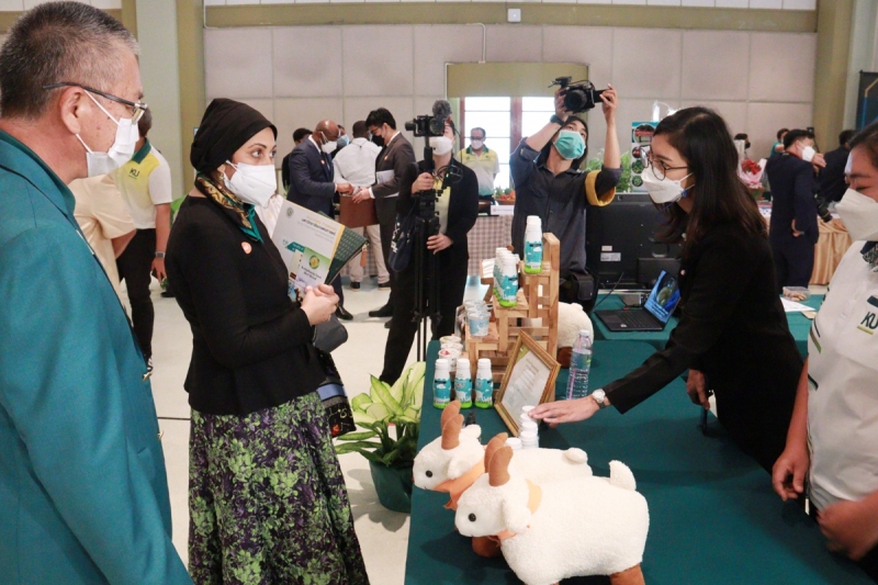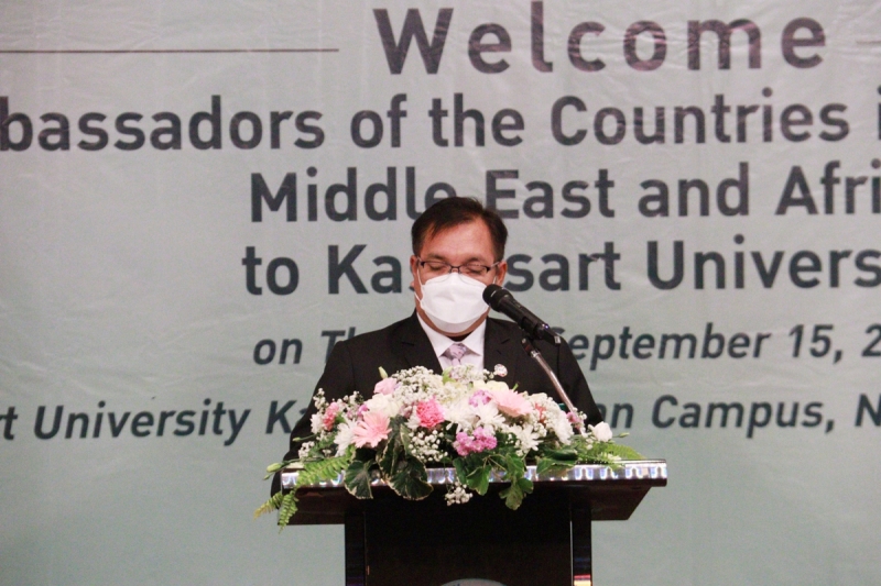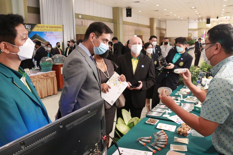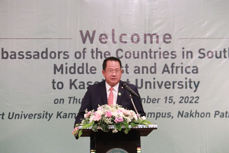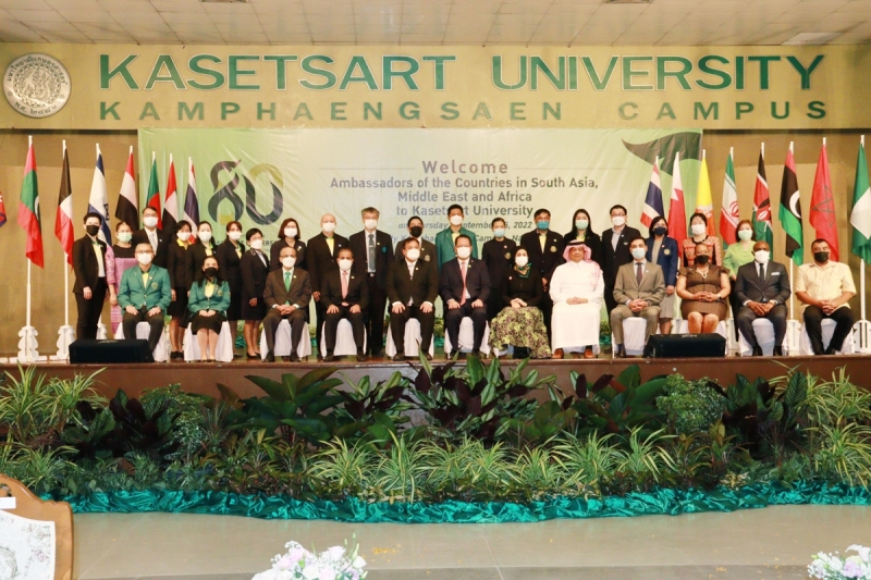 วันพฤหัสบดีที่ 15 กันยายน พ.ศ. 2565 คณะเกษตร กำแพงแสน ร่วมจัดแสดงผลงานวิจัยและนวัตกรรม ในการต้อนรับเอกอัครราชทูตเอเชียใต้ ตะวันออกกลางและแอฟริกา เข้าเยี่ยมชม มหาวิทยาลัยเกษตรศาสตร์ วิทยาเขตกำแพงแสน โดย ดร.จงรักษ์ วัชรินทร์รัตน์ อธิการบดีมหาวิทยาลัยเกษตรศาสตร์ กล่าวต้อนรับ นายดามพ์ บุญธรรม อธิบดีกรมเอเชียใต้ ตะวันออกกลางและแอฟริกา กล่าวเปิดงาน และร่วมชมนิทรรศการผลงานวิจัยและนวัตกรรม โดย ผู้ช่วยศาสตราจารย์ ดร. ชัยสิทธิ์ ทองจู คณบดีคณะเกษตร กำแพงแสน พร้อมคณาจารย์ ให้การต้อนรับและนำเสนอผลงาน ณ ห้องคอนเวนชั่น มหาวิทยาลัยเกษตรศาสตร์ วิทยาเขตกำแพงแสน