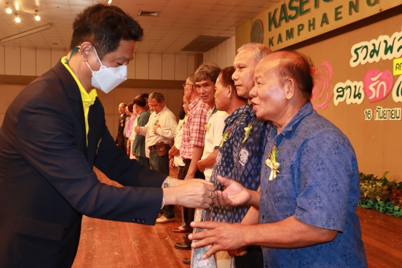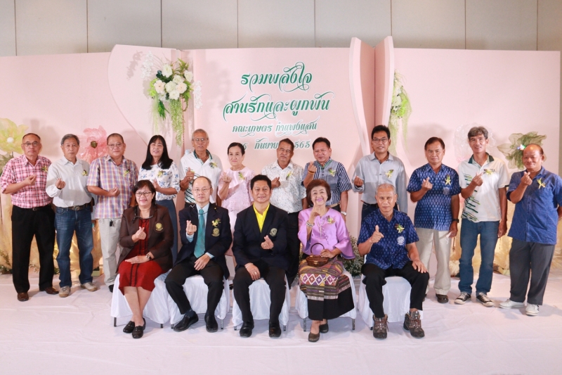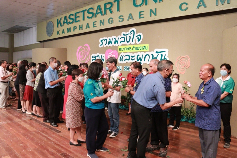 วันศุกร์ที่ 16 กันยายน พ.ศ. 2565 คณะเกษตร กำแพงแสน จัดงาน “รวมพลังใจ สานรัก และผูกพัน” โครงการสร้างวัฒนธรรมและค่านิยมของบุคลากรคณะเกษตร กำแพงแสน เพื่อแสดงมุทิตาจิตแด่ผู้เกษียณอายุราชการ ปี 2565 ในปีนี้มีบุคลากรคณะเกษตร กำแพงแสน เกษียณอายุราชการ จำนวน 16 ท่าน โดย ผู้ช่วยศาสตราจารย์ ดร. ชัยสิทธิ์ ทองจู คณบดีคณะเกษตร กำแพงแสน เป็นประธาน กล่าวเปิดงาน กล่าวแสดงมุทิตาจิต และมอบของที่ระลึกแด่ผู้เกษียณฯ ได้รับเกียรติจาก ดร.เมตตา เร่งขวนขวาย รองคณบดีฝ่ายกิจการนิสิต คณะเกษตร มก. ร่วมงาน กล่าวแสดงมุทิตาจิต และมอบของที่ระลึกแด่ผู้เกษียณฯ หัวหน้าภาควิชา/ศูนย์ และผู้แทนหน่วยงาน ขึ้นมอบของที่ระลึกแด่ผู้เกษียณฯ ดร. อรรถศิษฐ์ วงศ์มณีโรจน์ ผู้แทนผู้เกษียณอายุราชการ กล่าวแสดงความในใจ และกล่าวขอบคุณ จากนั้นบุคลากรร่วมมอบดอกไม้แสดงมุทิตาจิตแด่ผู้เกษียณฯ และถ่ายรูปร่วมกัน ณ ห้องคอนเวนชัน อาคารศูนย์มหาวิทยาลัยเกษตรศาสตร์ กำแพงแสน
