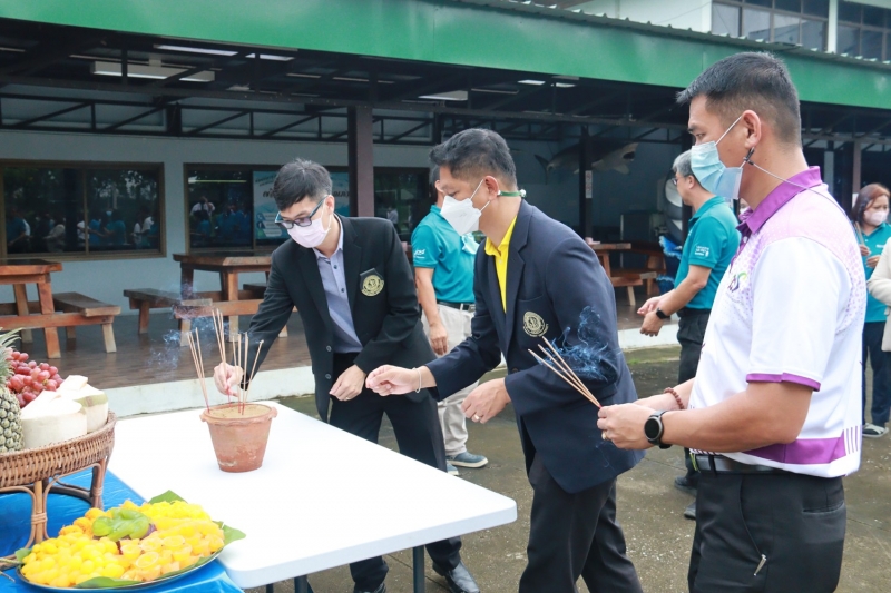 วันศุกร์ที่ 30 กันยายน 2565 ผู้ช่วยศาสตราจารย์ ดร. ชัยสิทธิ์ ทองจู คณบดีคณะเกษตร กำแพงแสน รองศาสตราจารย์ ดร.ชัยณรงค์ รัตนกรีฑากุล รองคณบดีฝ่ายวิจัย บริการวิชาการและวิเทศสัมพันธ์ ผู้ช่วยศาสตราจารย์ ดร.ธวัชชัย อินทร์บุญช่วย รองคณบดีฝ่ายพัฒนานิสิต และ ผู้ช่วยศาสตราจารย์ ดร.วนิดา สืบสายพรหม ผู้ช่วยคณบดีฝ่ายกิจการพิเศษ ร่วมแสดงความยินดีกับ นายณัฐพงษ์ ปานขาว หัวหน้าสถานีวิจัยประมงกำแพงแสน เนื่องในวันคล้ายวันสถาปนาสถานีวิจัยประมงกำแพงแสน ครบรอบ 21 ปี โดย ผู้ช่วยศาสตราจารย์ ดร.สุริยัน ธัญกิจจานุกิจ คณบดีคณะประมง เป็นประธานในงาน ร่วมพิธีไหว้เจ้าที่และสิ่งศักดิ์สิทธิ์ของสถานี ฟังพระสงฆ์เจริญพุทธมนต์ และร่วมรับประทานอาหารกลางวัน ณ สถานีวิจัยประมงกำแพงแสน