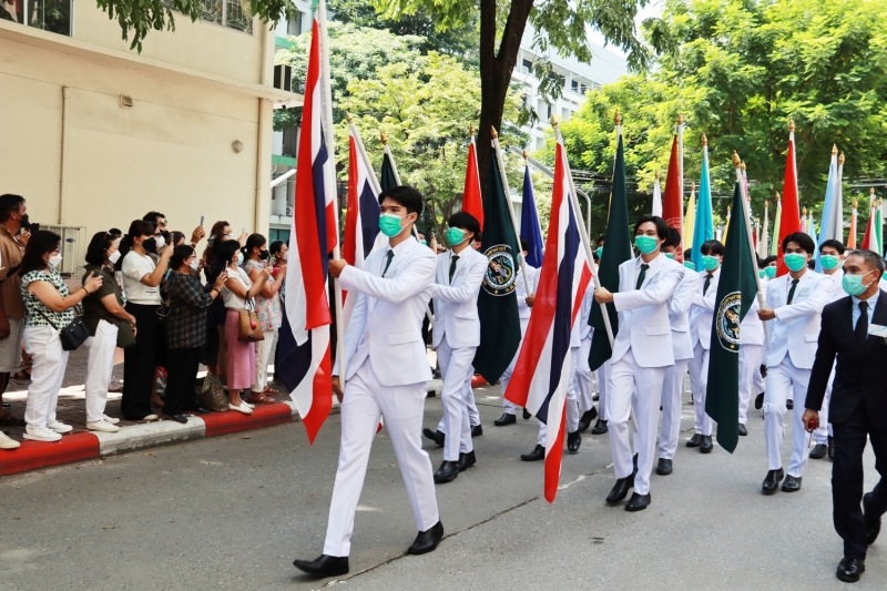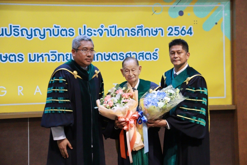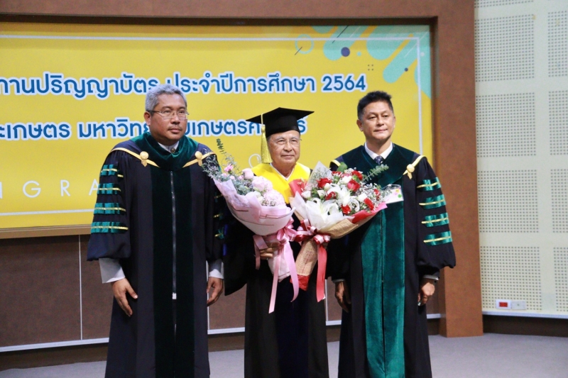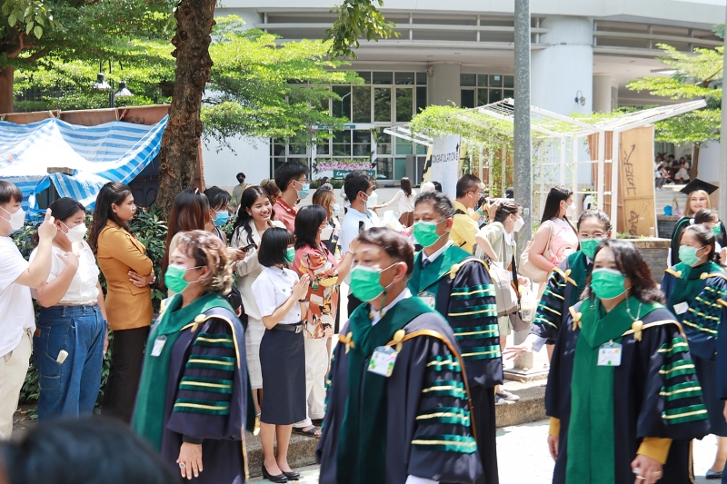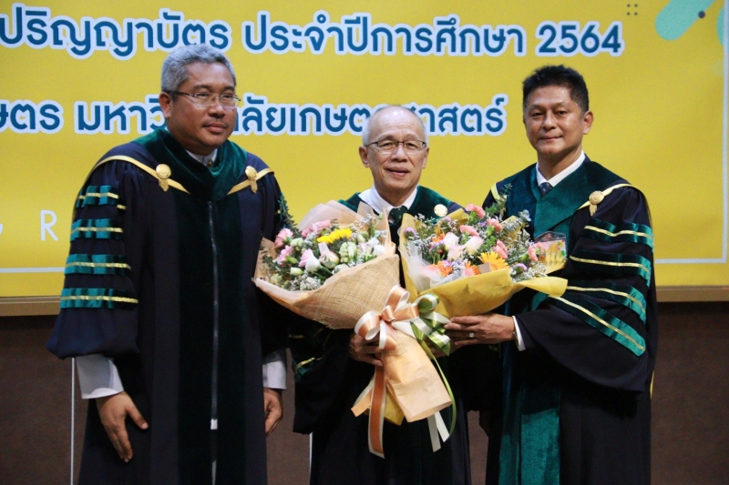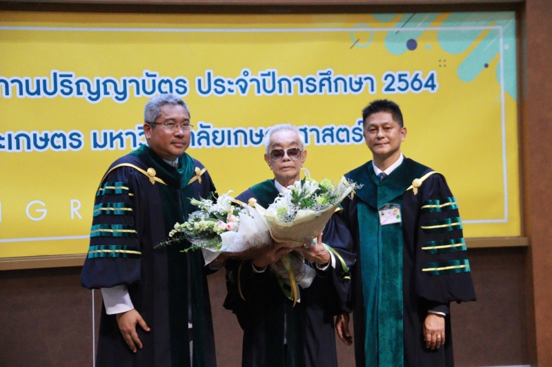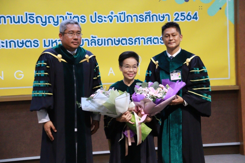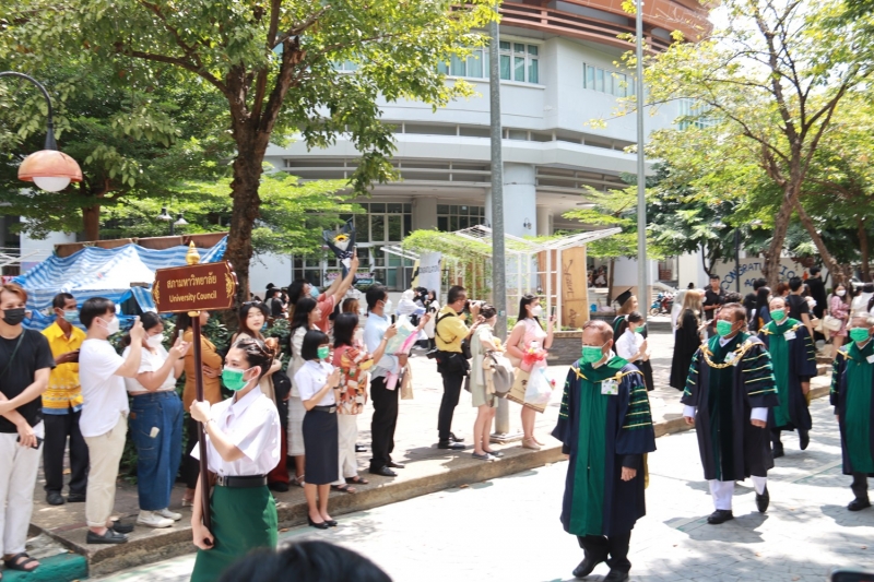จากนั้น ได้ร่วมเดินแถวกับผู้บริหารมหาวิทยาลัยเกษตรศาสตร์ นำผู้สำเร็จการศึกษาไปยังอาคารจักรพันธ์เพ็ญศิริ เพื่อเข้าพิธีพระราชทานปริญญาบัตร ประจำปีการศึกษา 2564