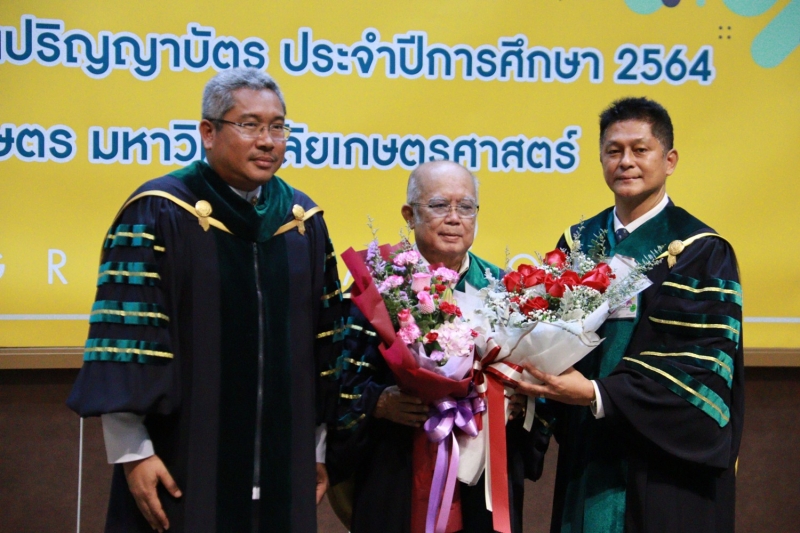 โดย รองศาสตราจารย์ ดร.ธานี ศรีวงศ์ชัย คณบดีคณะเกษตร กล่าวสดุดีกับผู้ที่ได้รับปริญญากิตติมศักดิ์ และศาสตราจารย์