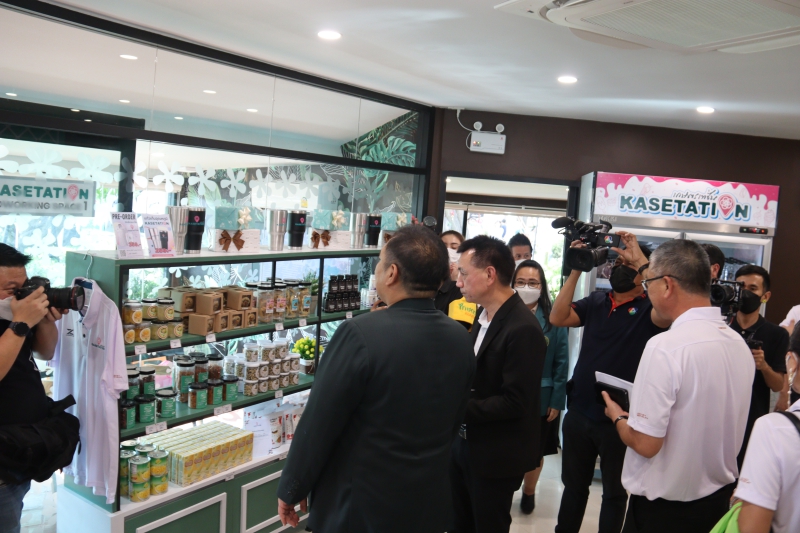 วันศุกร์ที่ 11 พฤศจิกายน พ.ศ. 2565 เวลา 13.30 น. ผู้ช่วยศาสตราจารย์ ดร.ชัยสิทธิ์ ทองจู คณบดีคณะเกษตร กำแพงแสน ร่วมพิธีเปิดร้าน The Premium@KU KPS (KASETATION) และ ร้านกาแฟพันธุ์ไทย ได้รับเกียรติจาก ดร.จงรัก วัชรินทร์รัตน์ อธิการบดีมหาวิทยาลัยเกษตรศาสตร์ เป็นประธานในพิธี และได้นำสินค้าของคณะเกษตร กำแพงแสน ที่ได้จำหน่ายในร้าน มาร่วมจัดแสดง ณ บริเวณสวนเฉลิมพระเกียรติ 80 พรรษาฯ มหาวิทยาลัยเกษตรศาสตร์ วิทยาเขตกำแพงแสน