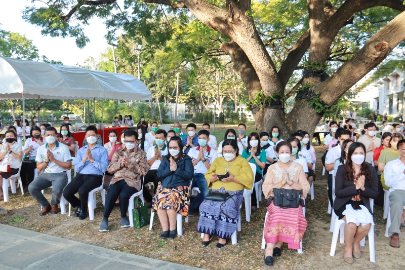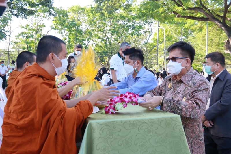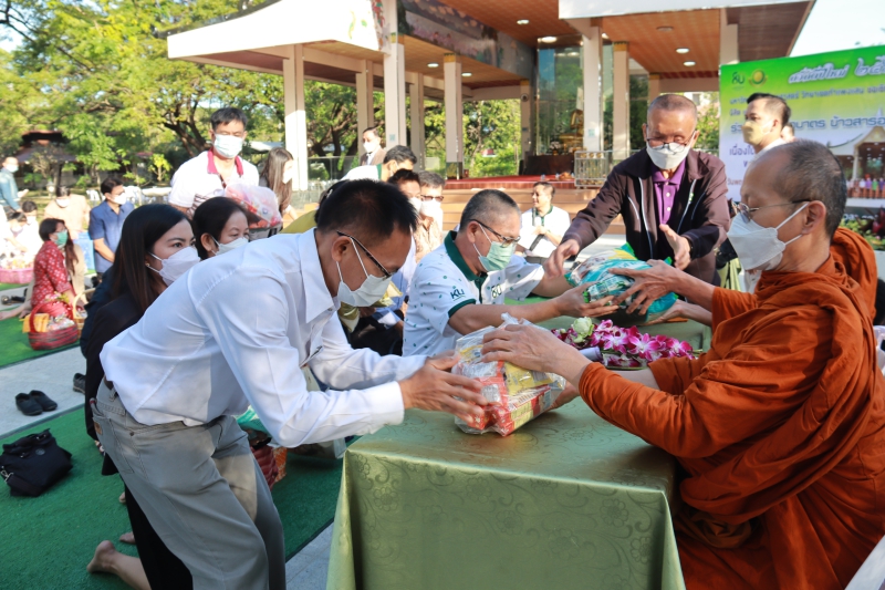 วันพฤหัสบดีที่ 5 มกราคม 2566 เวลา 07.00 น. ผู้ช่วยศาสตราจารย์ ดร.ชัยสิทธิ์ ทองจู คณบดีคณะเกษตร กำแพงแสน พร้อมด้วยผู้บริหาร คณาจารย์ และบุคลากร ร่วมกิจกรรมทำบุญตักบาตรเนื่องในโอกาสวันขึ้นปีใหม่ 2566 โดย รองศาสตราจารย์ นายสัตวแพทย์ ดร.อนุชัย ภิญโญภูมิมินทร์ รองอธิการบดีวิทยาเขตกำแพงแสน เป็นประธานในพิธี ร่วมรับศีล ฟังพระธรรมเทศนา และรับพรเนื่องในโอกาสวันขึ้นปีใหม่ 2566 จากนั้น ร่วมกันถวายข้าวสารอาหารแห้ง ณ พุทธอุทยานเกษตร กำแพงแสน