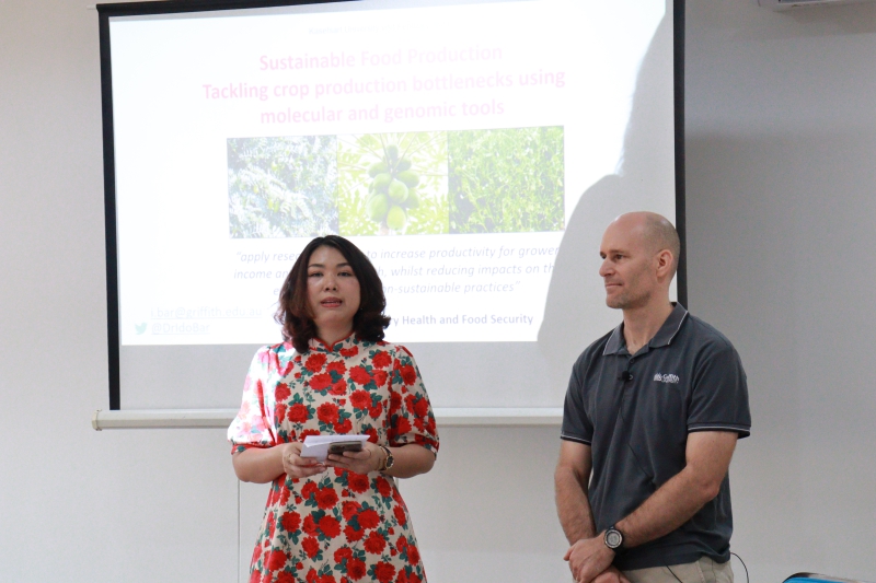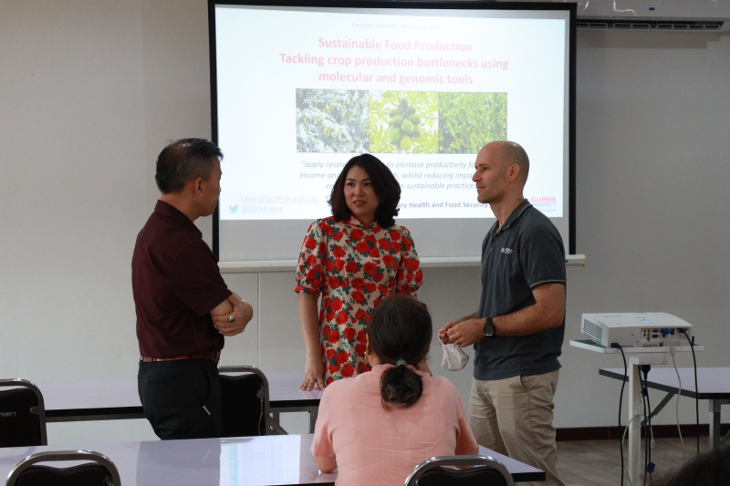 วันอังคารที่ 14 กุมภาพันธ์ 2566 รองศาสตราจารย์ ดร. ชัยณรงค์ รัตนกรีฑากุล รองคณบดีฝ่ายวิจัย บริการวิชาการและวิเทศสัมพันธ์ และ อาจารย์ ดร. ชัชมาศ กาญจนอุดมการ ภาควิชาพืชสวน ให้การต้อนรับ Dr. Ido Bar จาก Griffith University ประเทศออสเตรเลีย ในโอกาสเข้าบรรยายพิเศษในหัวข้อ Sustainable Food Production tacking crop production bottlenecks using molecular and genomic tools ณ ห้องประชุม อาคารบริการวิชาการ เรือนเกษตรอภิรมย์