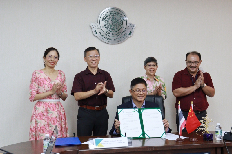 คณะเกษตร กำแพงแสน ลงนามโดย ผู้ช่วยศาสตราจารย์ ดร. ชัยสิทธิ์ ทองจู คณบดีคณะเกษตร กำแพงแสน และมี รองศาสตราจารย์ ดร. ชัยณรงค์ รัตนกรีฑากุล รองคณบดีฝ่ายวิจัย บริการวิชาการและวิเทศสัมพันธ์ ผู้ช่วยศาสตราจารย์ ดร.วชิรญา อิ่มสบาย หัวหน้าภาควิชาพืชสวน และอาจารย์ภาควิชาพืชสวน ร่วมในพิธี