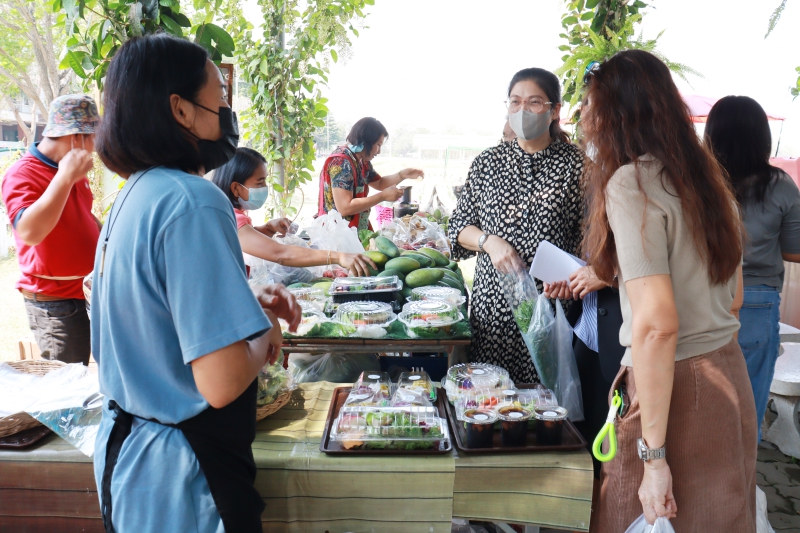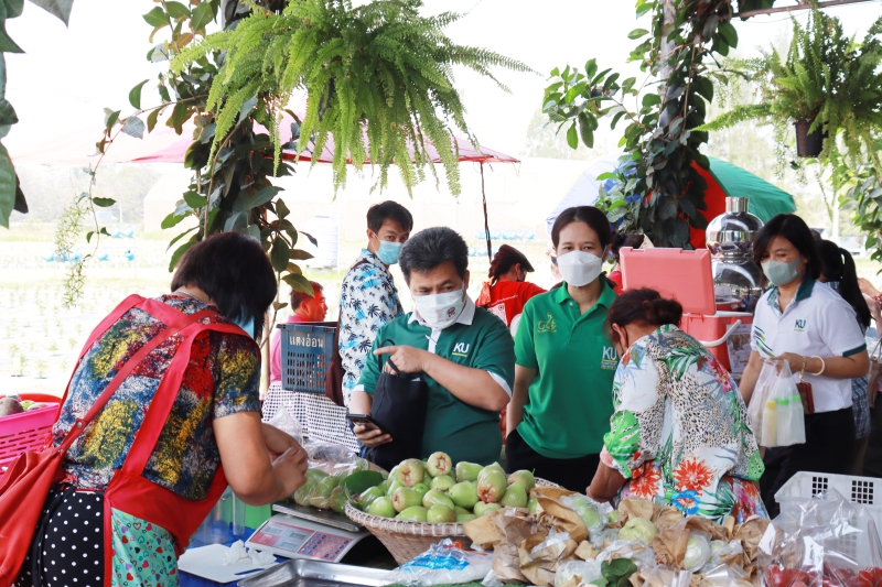 วันศุกร์ที่ 24 กุมภาพันธ์ 2566 คณะเกษตร กำแพงแสน ได้ดำเนินการจัดสถานที่ในการจัดกิจกรรม "มหาวิทยาลัยเกษตรศาสตร์ ช่วยเกษตรกร เกษตรกรช่วยผู้บริโภค สู้ภัย COVID-19" ครังที่ 99 ซึ่งสัญจรมาจัดที่ เรือนเกษตรอภิรมย์ มีสินค้ามาวางจำหน่ายมากมาย จากกลุ่มเกษตรกรผู้ผลิตสินค้าเกษตรที่ได้รับการส่งเสริมจากสำนักส่งเสริมและฝึกอบรม กำแพงแสน ได้รับความสนใจจากบุคลากร นิสิต และบุคคลทั่วไป สั่งซื้อสินค้าจำนวนมาก